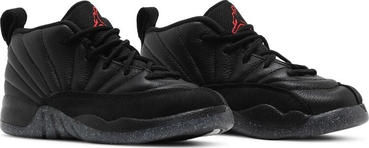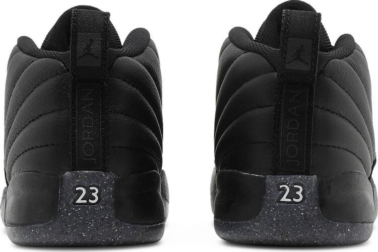Jordan 12 Utility TD Grind, предлагаемые в уменьшенном размере для нового поколения поклонников MJ, сочетают в себе сдержанную цветовую гамму классического силуэта. Прошитый верх выполнен из черной мятой кожи с тональными накладками из гладкого нубука, заменяющего типичную для модели 12 кожу с текстурой ящерицы. На язычке из баллистической сетки красуется малиновый логотип Jumpman контрастного цвета. Кроссовки установлены на мягкой межподошве из пеноматериала, поддерживаемой под ногами пятнистой резиновой подошвой, в состав которой на 3% входит Nike Grind — переработанные материалы, полученные из отходов производства и обуви с истекшим сроком эксплуатации.