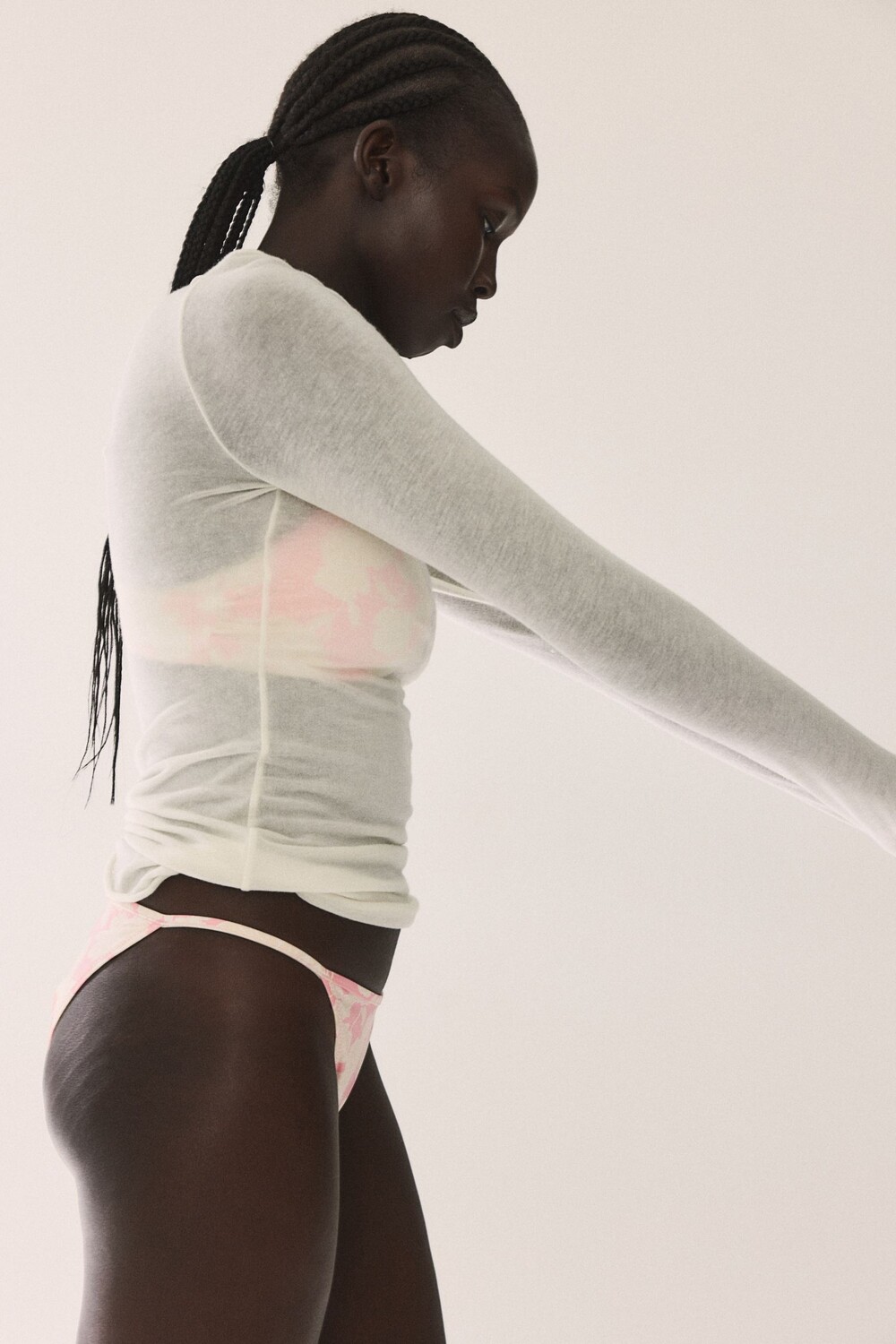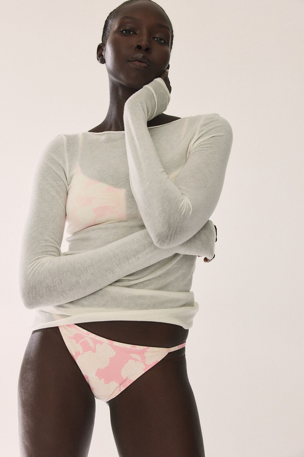 Плавки бикини на сплошной подкладке. Средняя посадка, узкие бретели на бедрах.