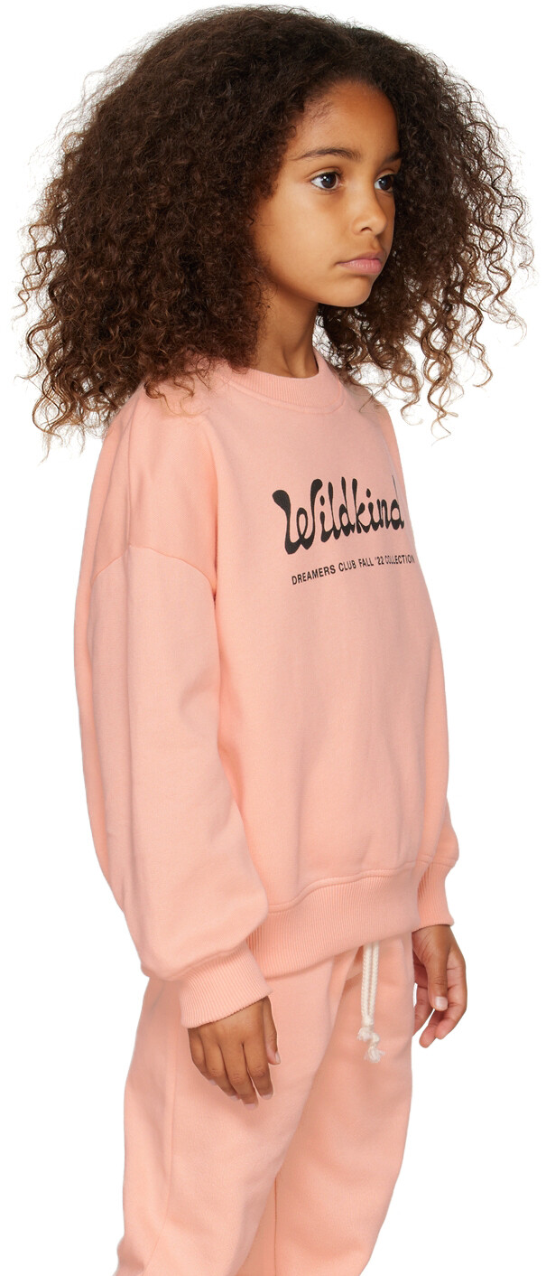 Розовая флисовая толстовка с длинными рукавами из органического хлопка, сертифицированная GOTS. Черный логотип на груди.