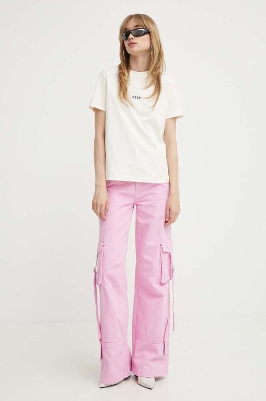 Хлопковая футболка Msgm, бежевый 9 942₽