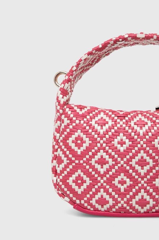 Небольшая сумочка из коллекции Guess. Застегивающаяся модель из текстильного материала.