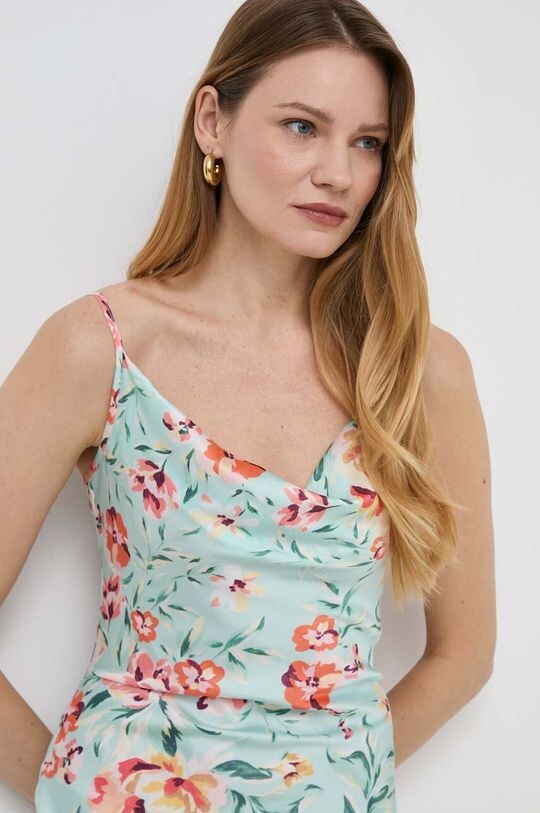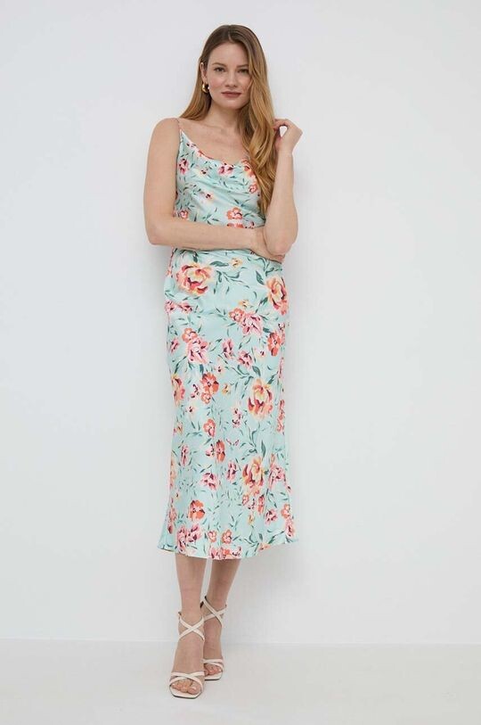 Платье из коллекции Guess. Модель трапециевидной формы из узорчатой ​​ткани. Легкий материал, предназначенный для теплого времени года.