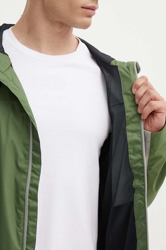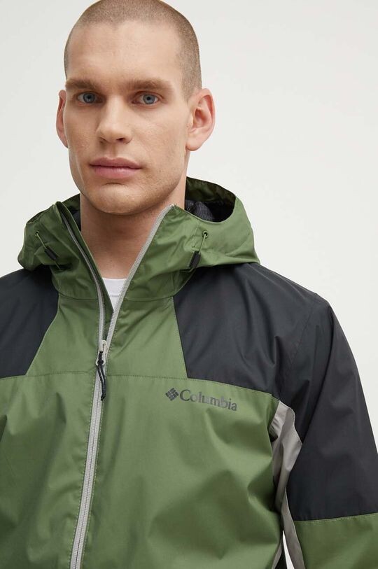Уличная куртка из коллекции Columbia. Переходная модель из материала с дышащей мембраной, обеспечивающей водонепроницаемость.
