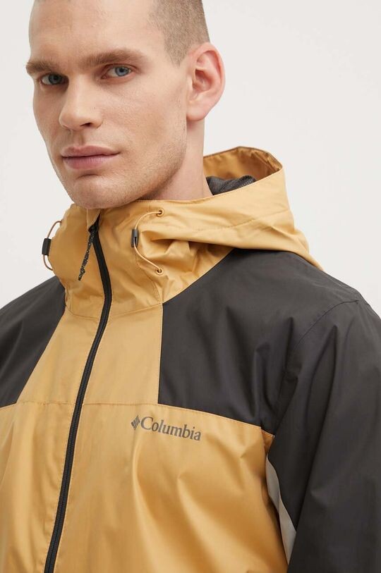 Уличная куртка из коллекции Columbia. Переходная модель из материала с дышащей мембраной, обеспечивающей водонепроницаемость.
