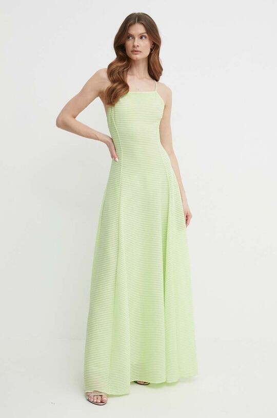 - Расклешенный крой. - Потайная застежка-молния. - Модель на подкладке. - Нерегулируемые, несъемные лямки. - Тонкий эластичный трикотаж. - Ширина под мышками: 37 см. - Ширина талии: 28 см. - Длина: 146 см. - Размеры указаны для размера: 42.