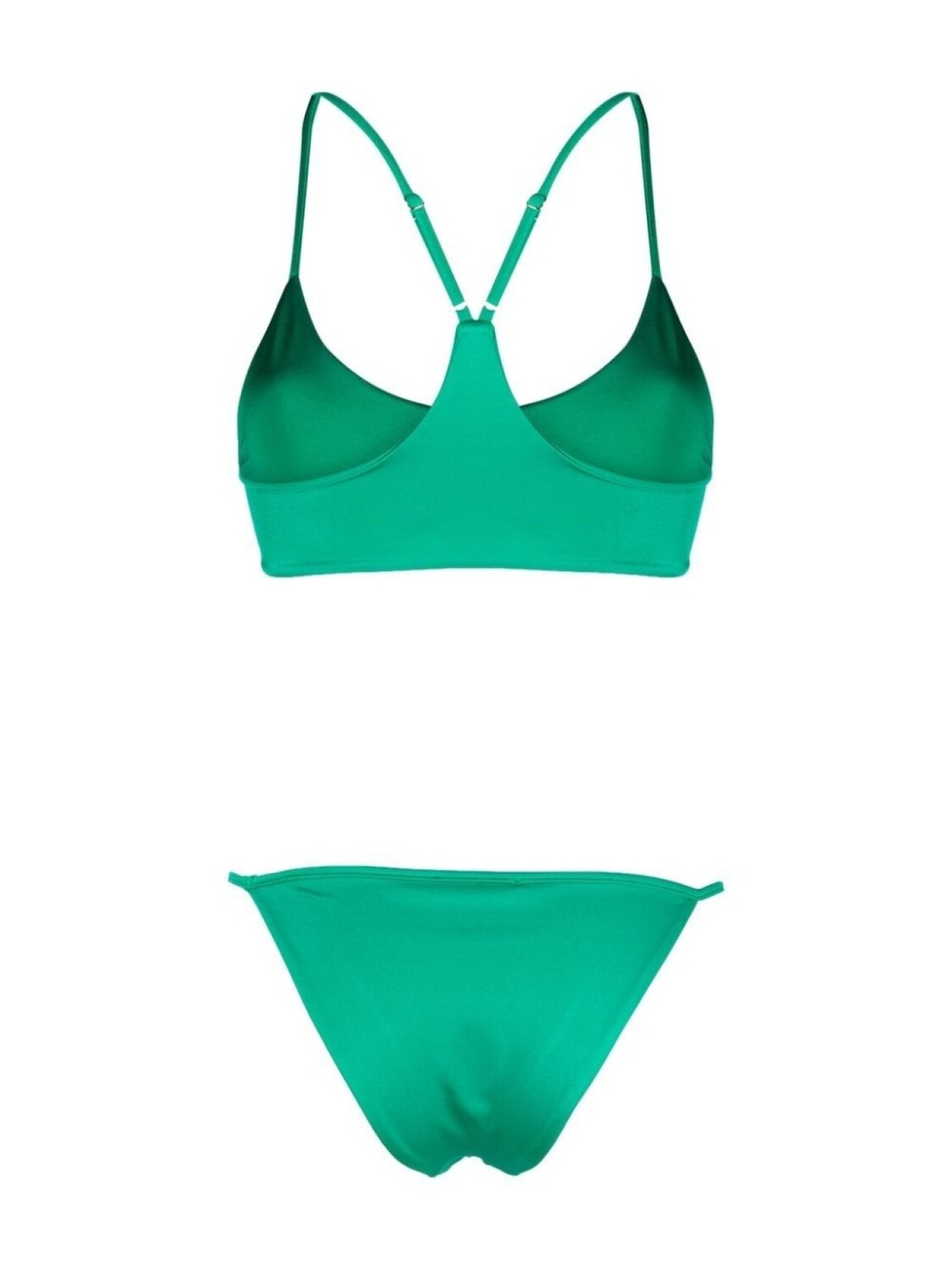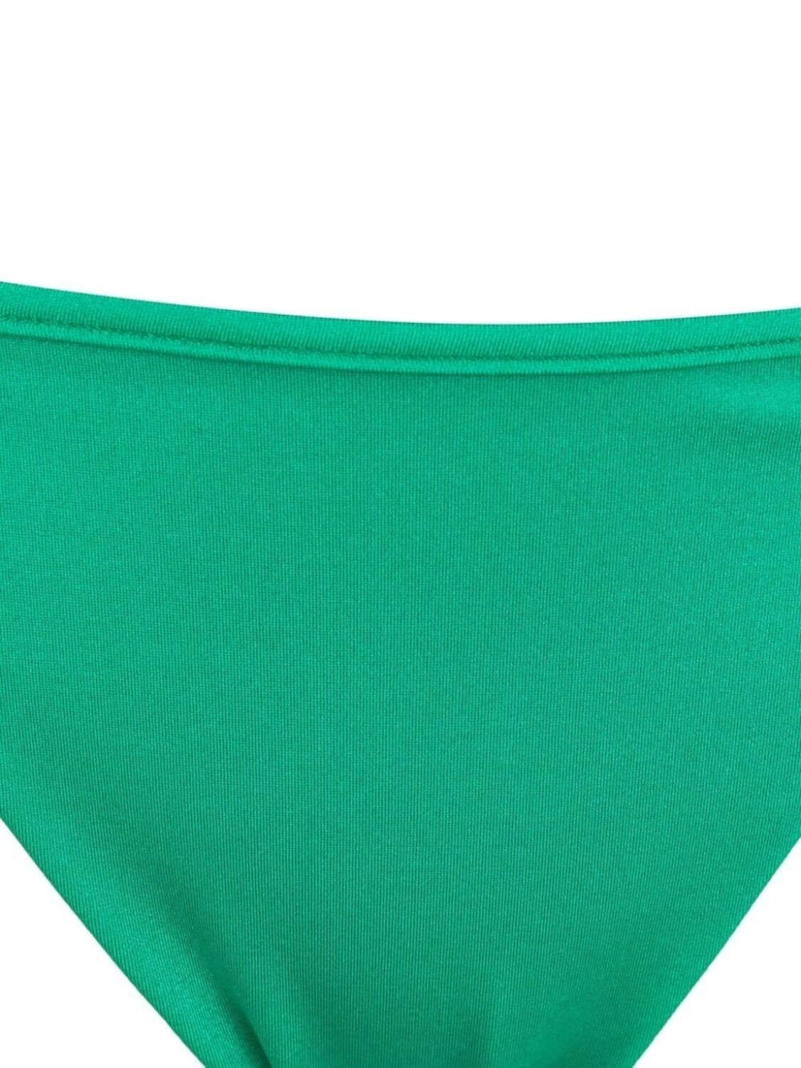 Нефритовый, эластичный материал, U-образный вырез, перекрестные бретели на спине, низкая посадка и тонкие ремешки. Пожалуйста, примеряйте купальники и пляжные шорты только поверх собственного белья.