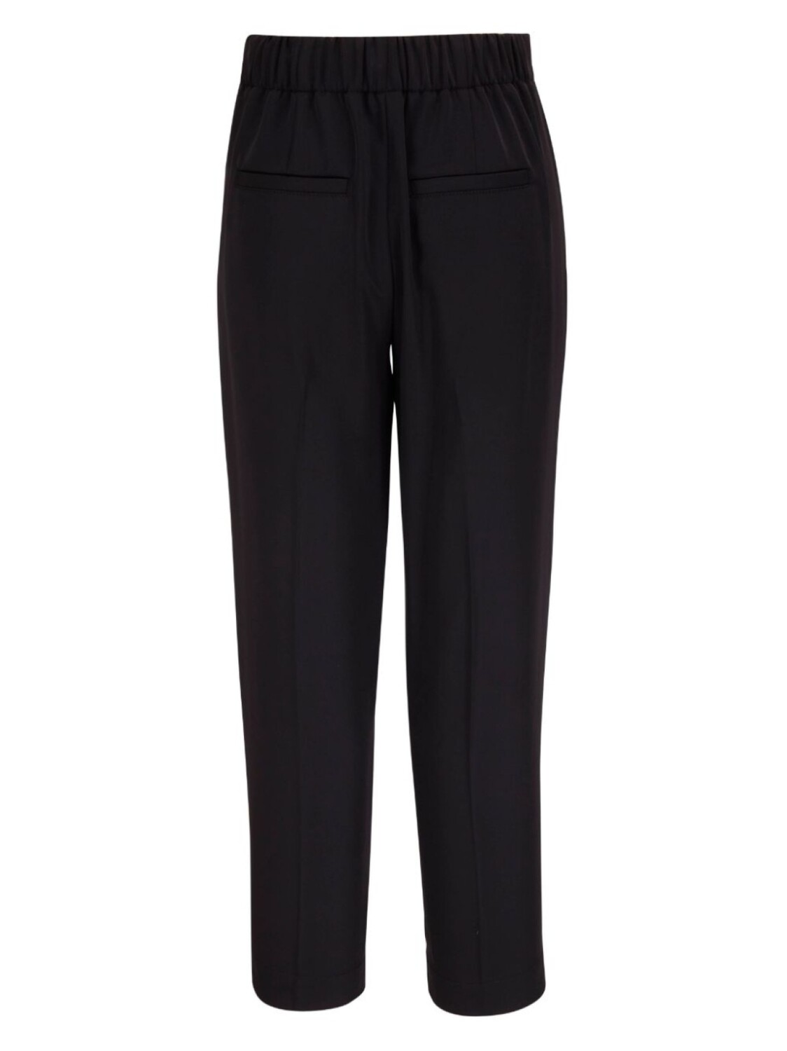 Черный, петли для ремня, эластичный пояс сзади, потайная застежка спереди, два прорезных кармана сзади и зауженный крой.