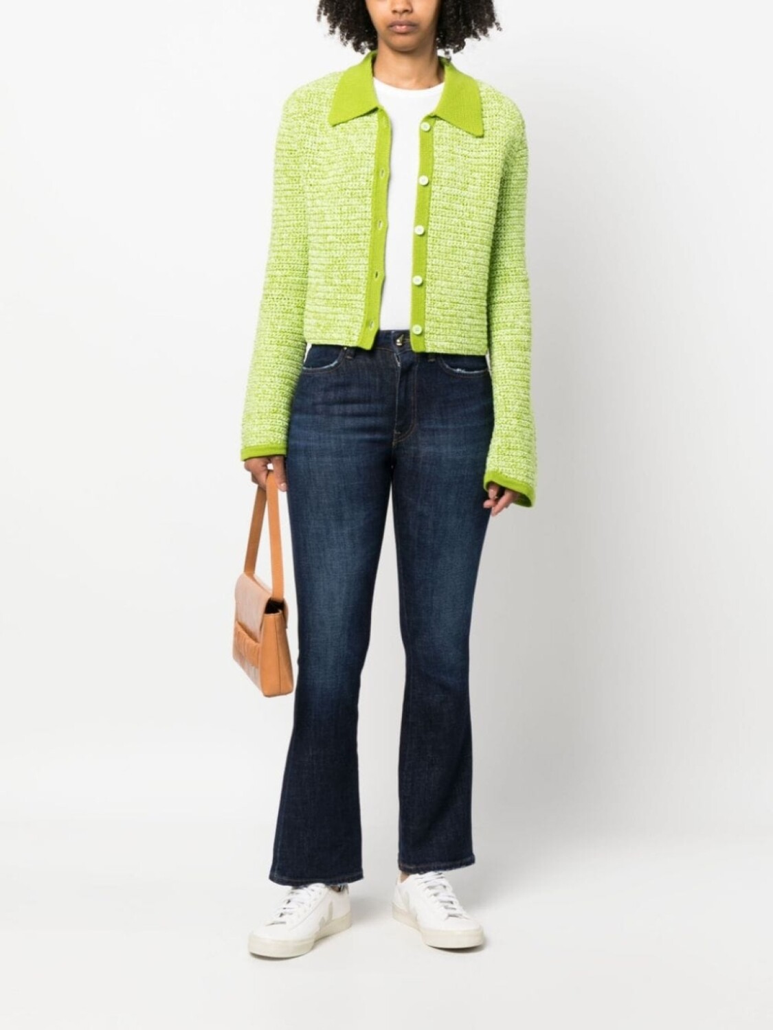 Синий, деним, эластичный материал, нашивка с логотипом сзади, петли для ремня, декоративная строчка, средняя посадка, расклешенный подол, застежка на молнии спереди и пять карманов.
