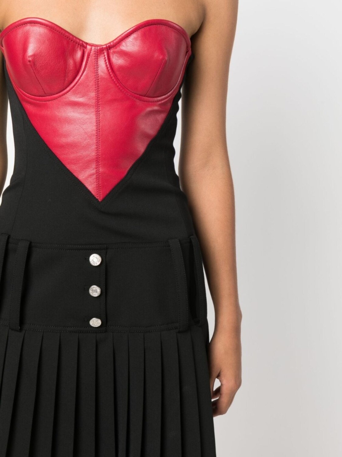 Черный/красный, дизайн колор-блок, оправа в форме сердца, без бретелей, вырез в форме сердца, декоративные пуговицы, расклешенный подол и плиссированная юбка.