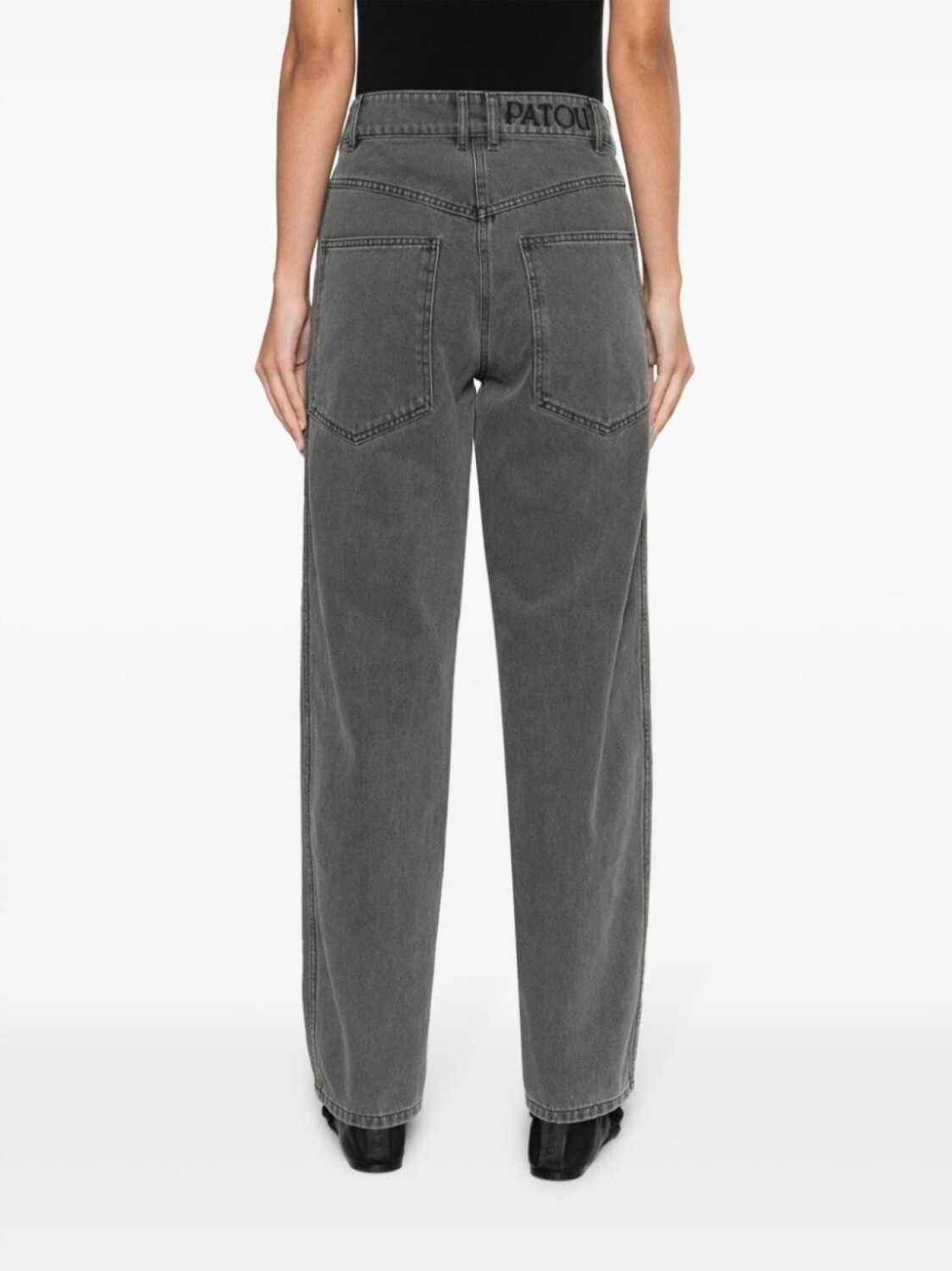 Patou embroidered-logo straight-leg jeans, черный