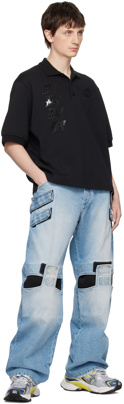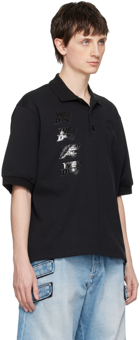 Черная хлопковая футболка-поло We11done