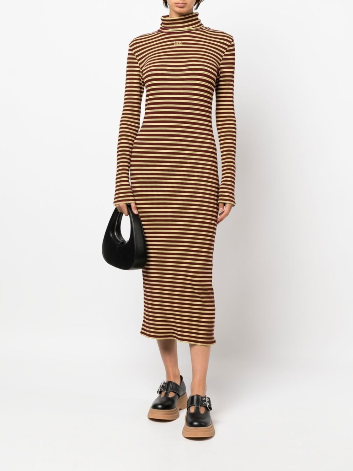 Wales Bonner полосатое платье с высоким воротником, черный