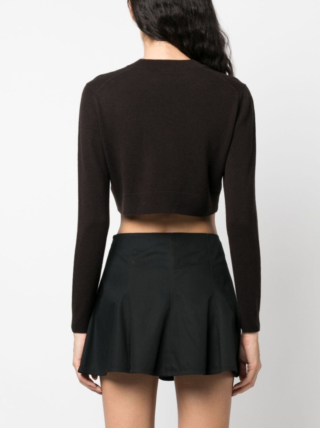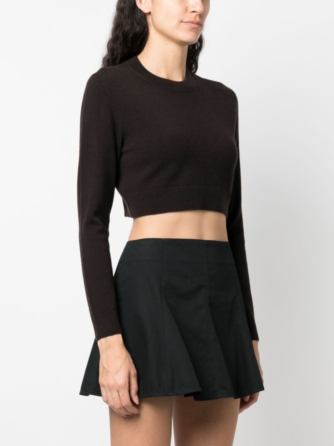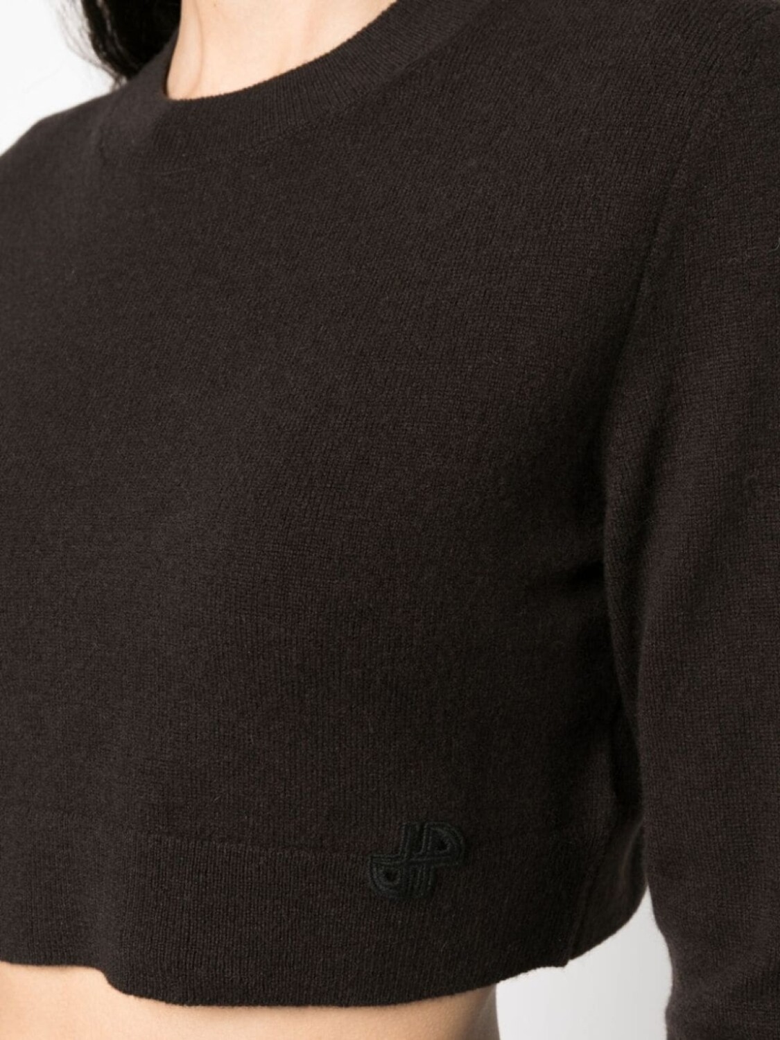 Коричневый, смесь шерсти мериноса и кашемира, вязаный дизайн, вышитый логотип сбоку, отделка в рубчик, круглый вырез, длинные рукава, укороченная длина, прямой подол