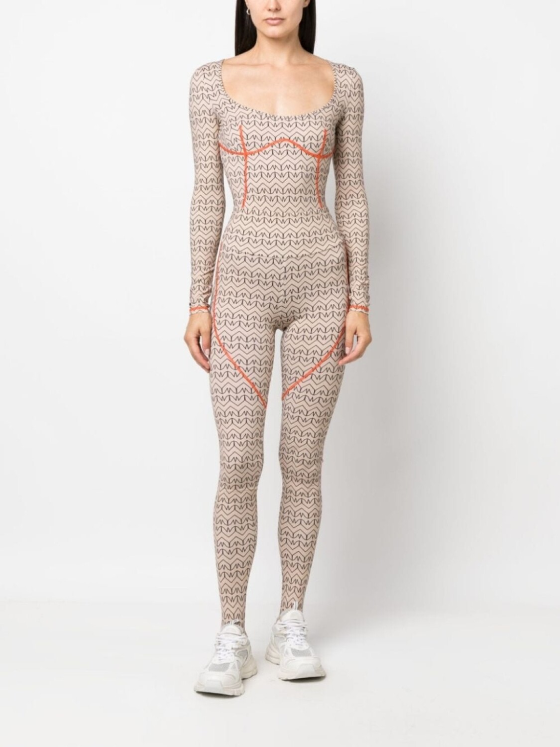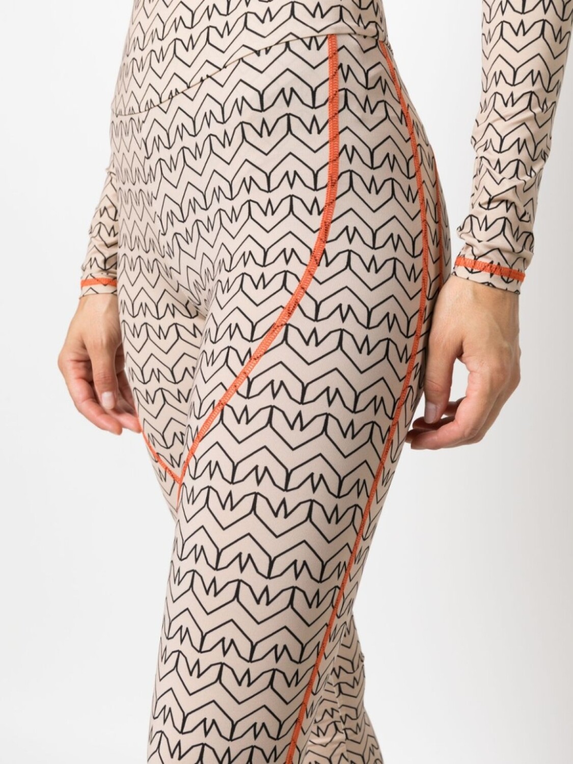 Бежевый, черный, оранжевый, монограмма, контрастная строчка, эластичный материал, завышенная талия и завышенная талия.
