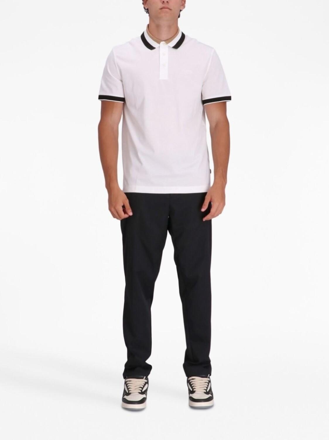 Черный, ткань с твиловым переплетением, водоотталкивающий материал, застежка на молнии и пуговице спереди, зауженный крой, два вшитых кармана по бокам, два кармана с листочкой сзади и прямой подол.