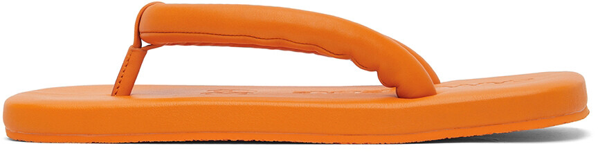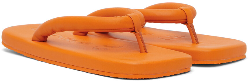 Сандалии без шнурков из полированной телячьей кожи оранжевого цвета.