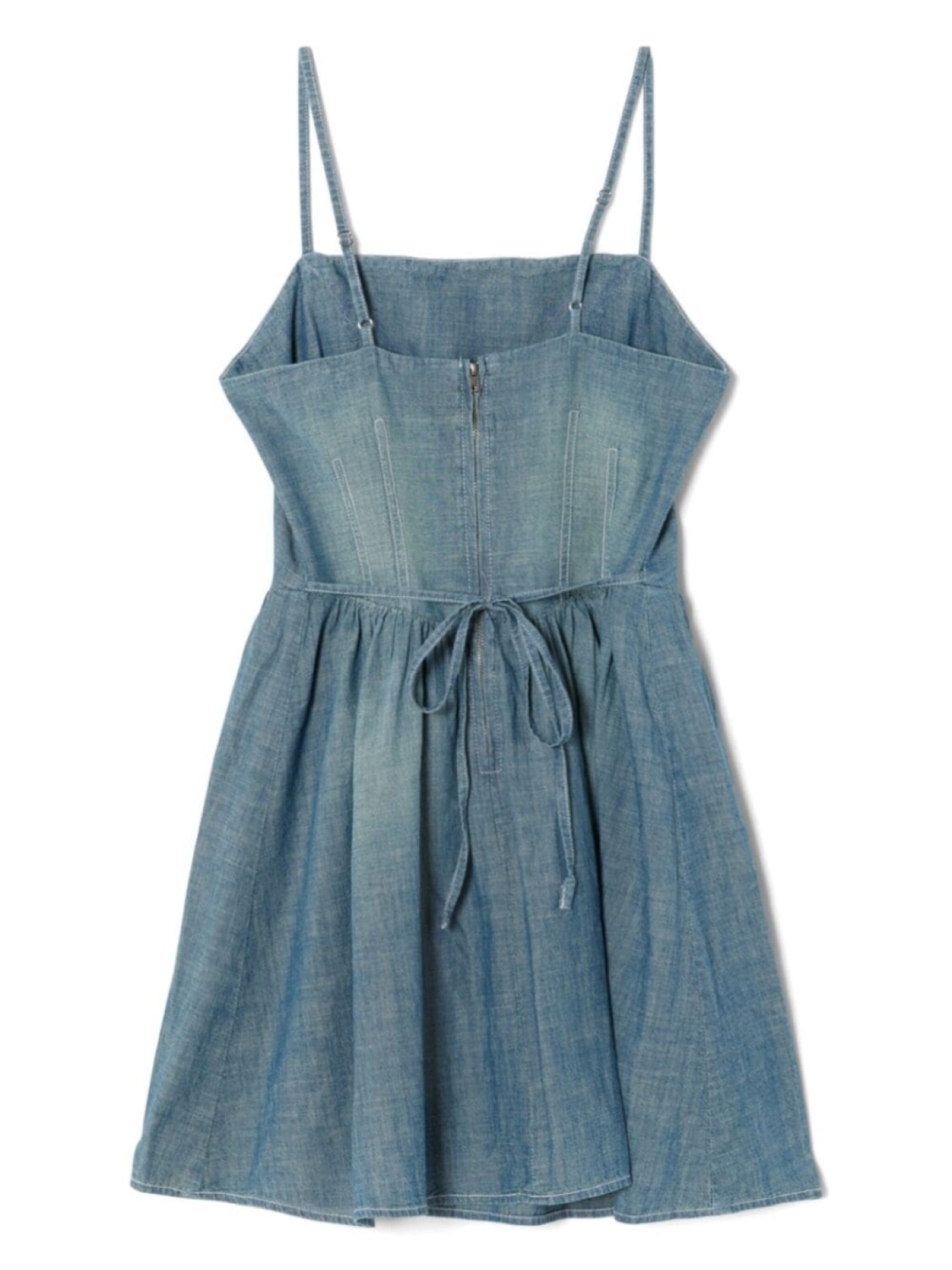 Голубой, хлопок, ткань шамбре, дизайн со сборками, верх в корсетном стиле, квадратный вырез, застежка на молнии спереди, регулируемые тонкие бретели, расклешенный подол, длина до бедер