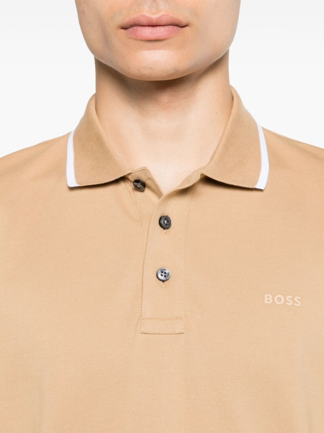 BOSS рубашка поло с вышитым логотипом, нейтральный цвет