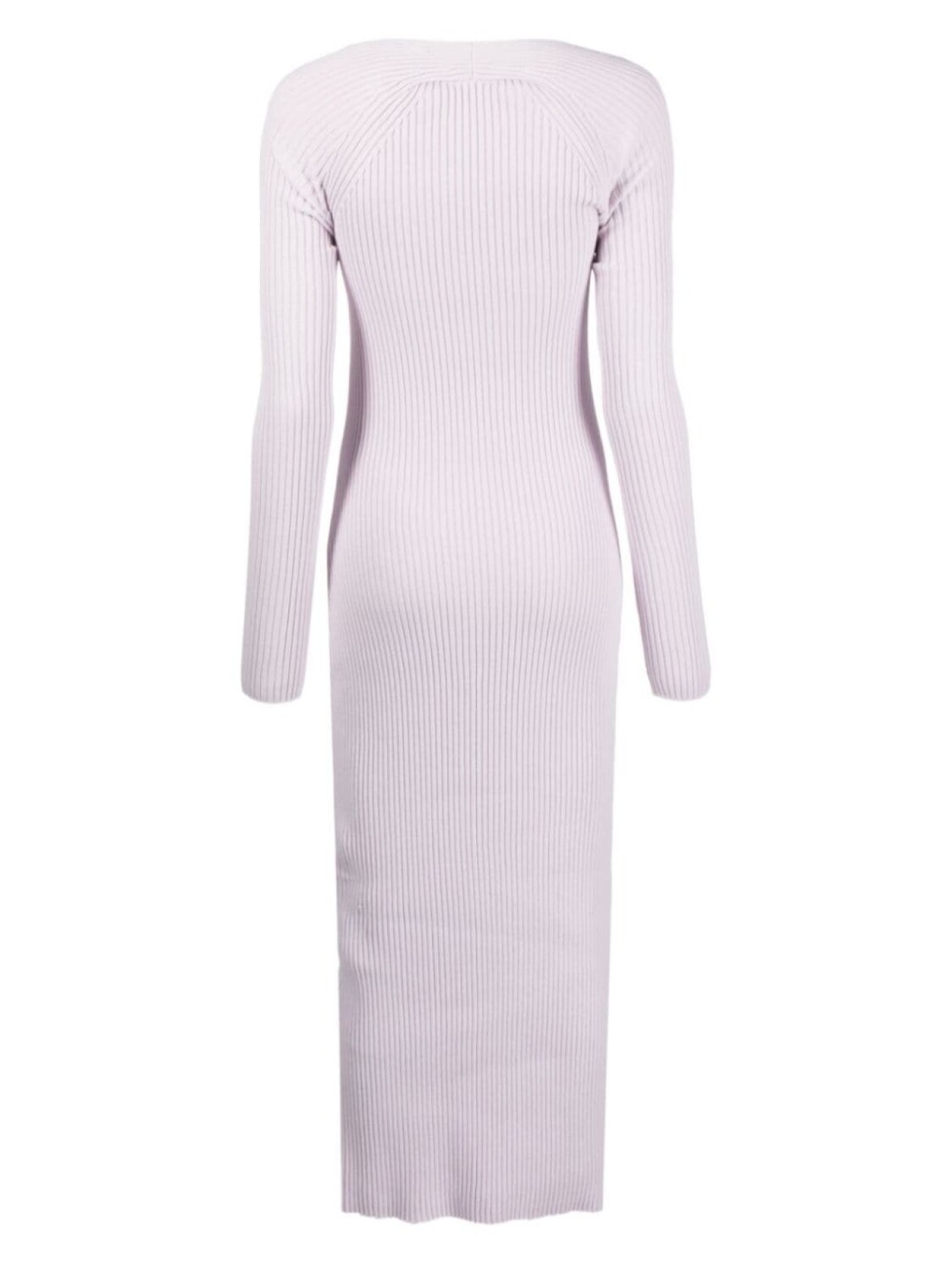 Лиловый, смесовый хлопок, трикотаж в рубчик, вырезные детали, вырез в форме сердца, длинные рукава и длина миди.