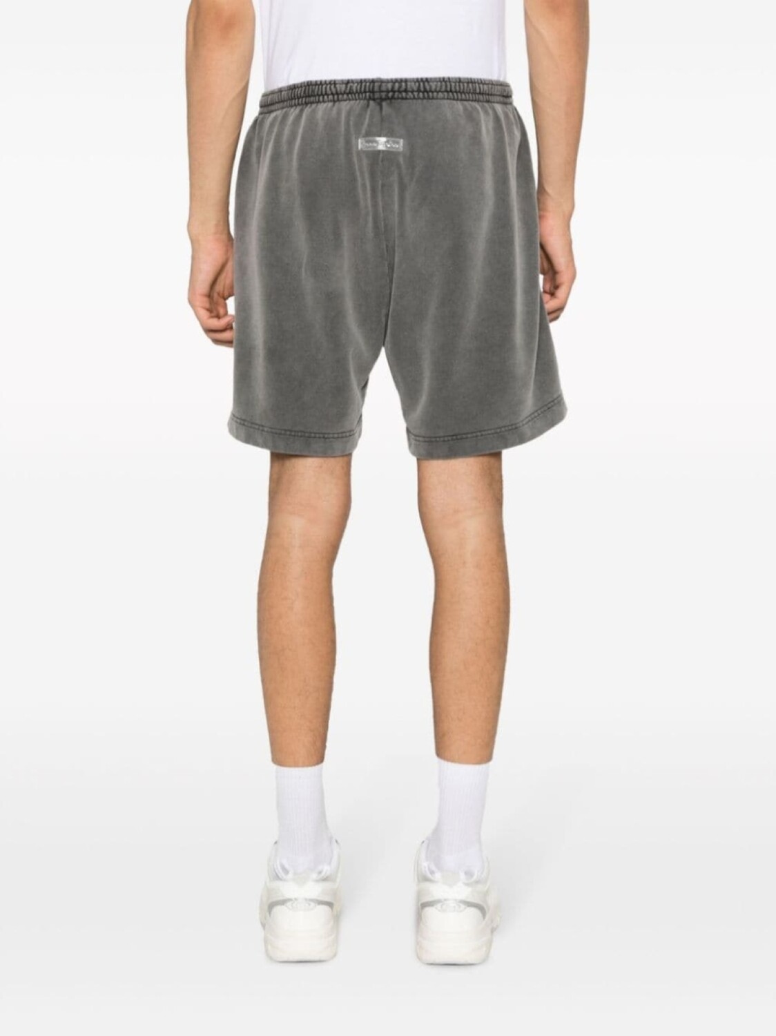Черный, хлопок, эффект потертости, нашивка с логотипом сзади, эластичный пояс, два вшитых кармана по бокам и длина выше колена.