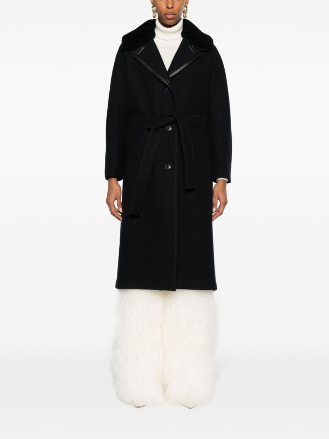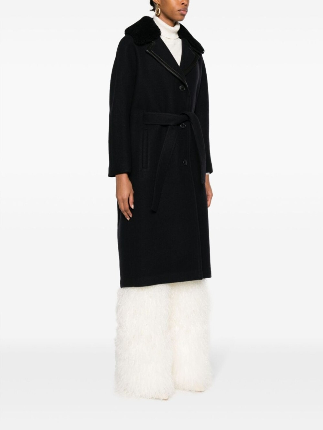 Yves Salomon шерстяное пальто с поясом, синий