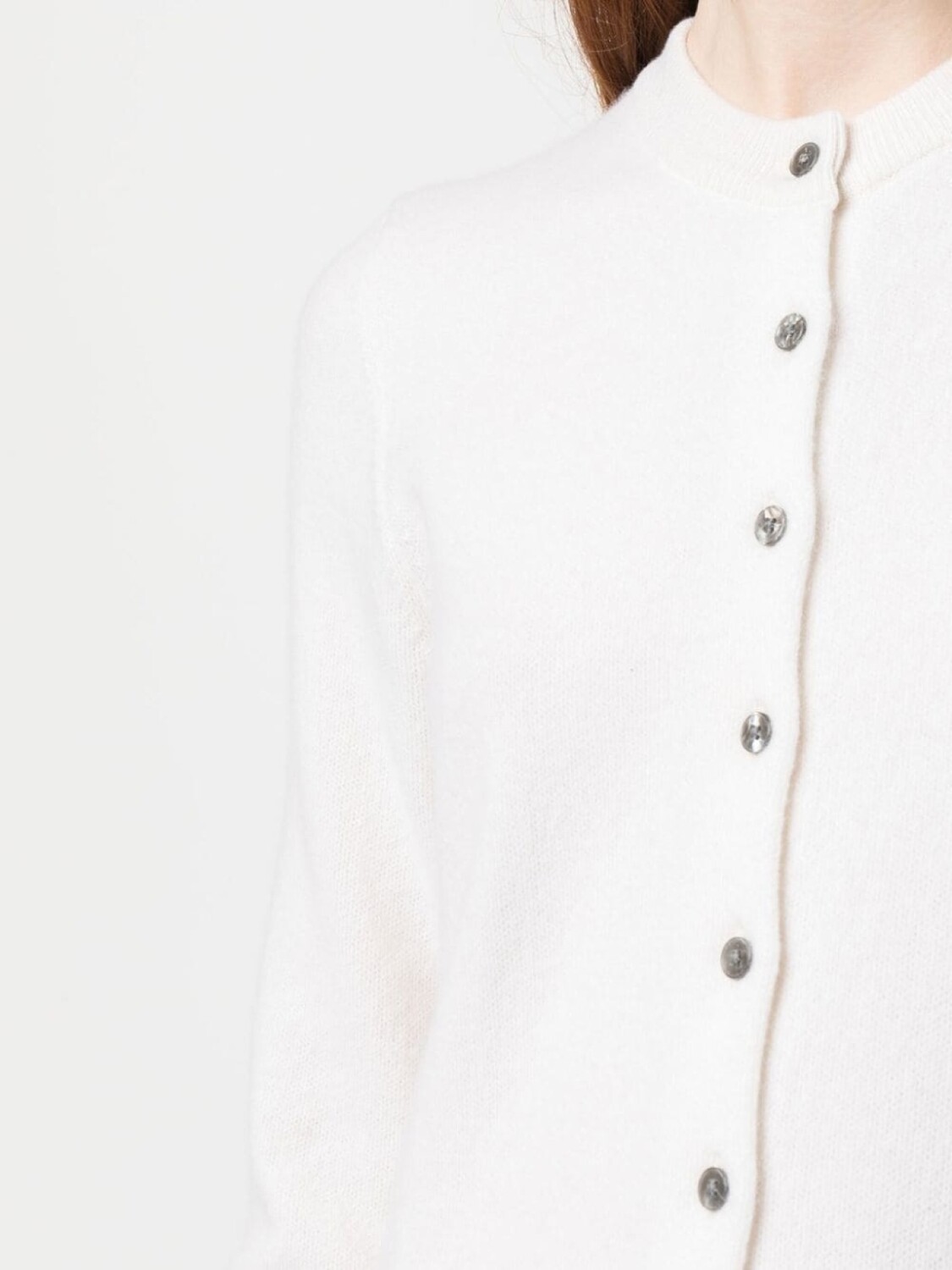 Тонкая вязка, матовое покрытие, застежка на пуговицах спереди, круглый вырез, длинные рукава, длина миди и прямой подол.