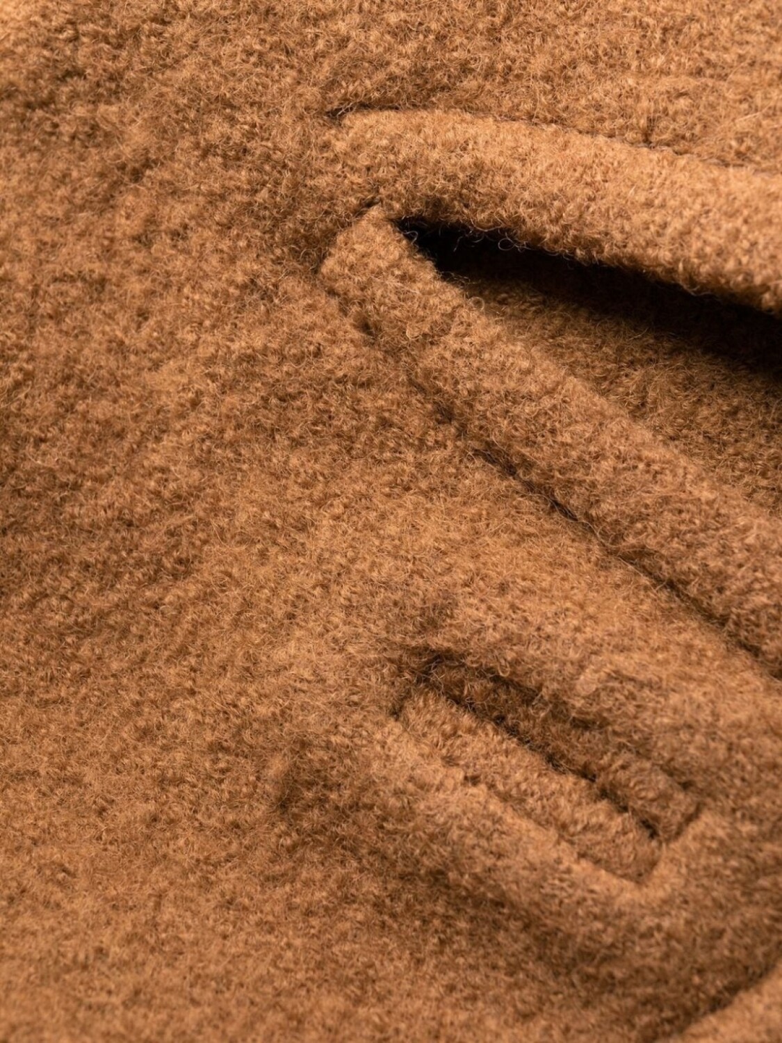Расцветка Desert Rat Brown, необработанная шерсть, зазубренные лацканы, двубортная застежка на кнопки, передние карманы с клапаном, два боковых кармана с листочкой и длинные рукава.