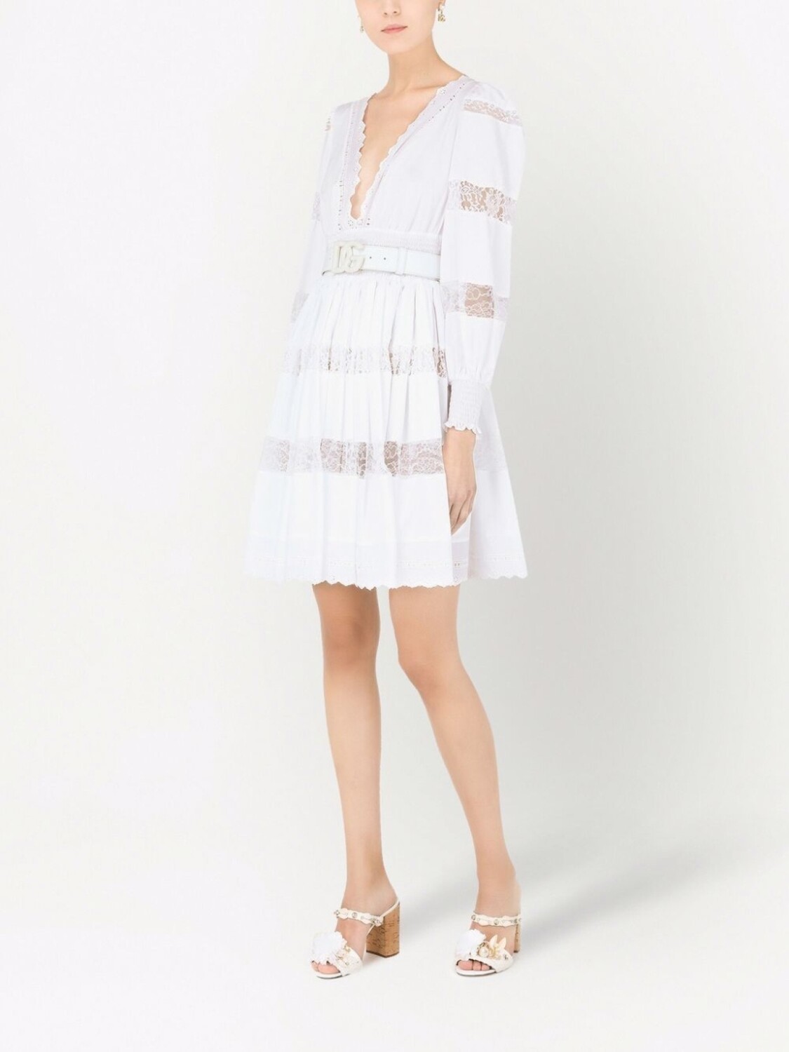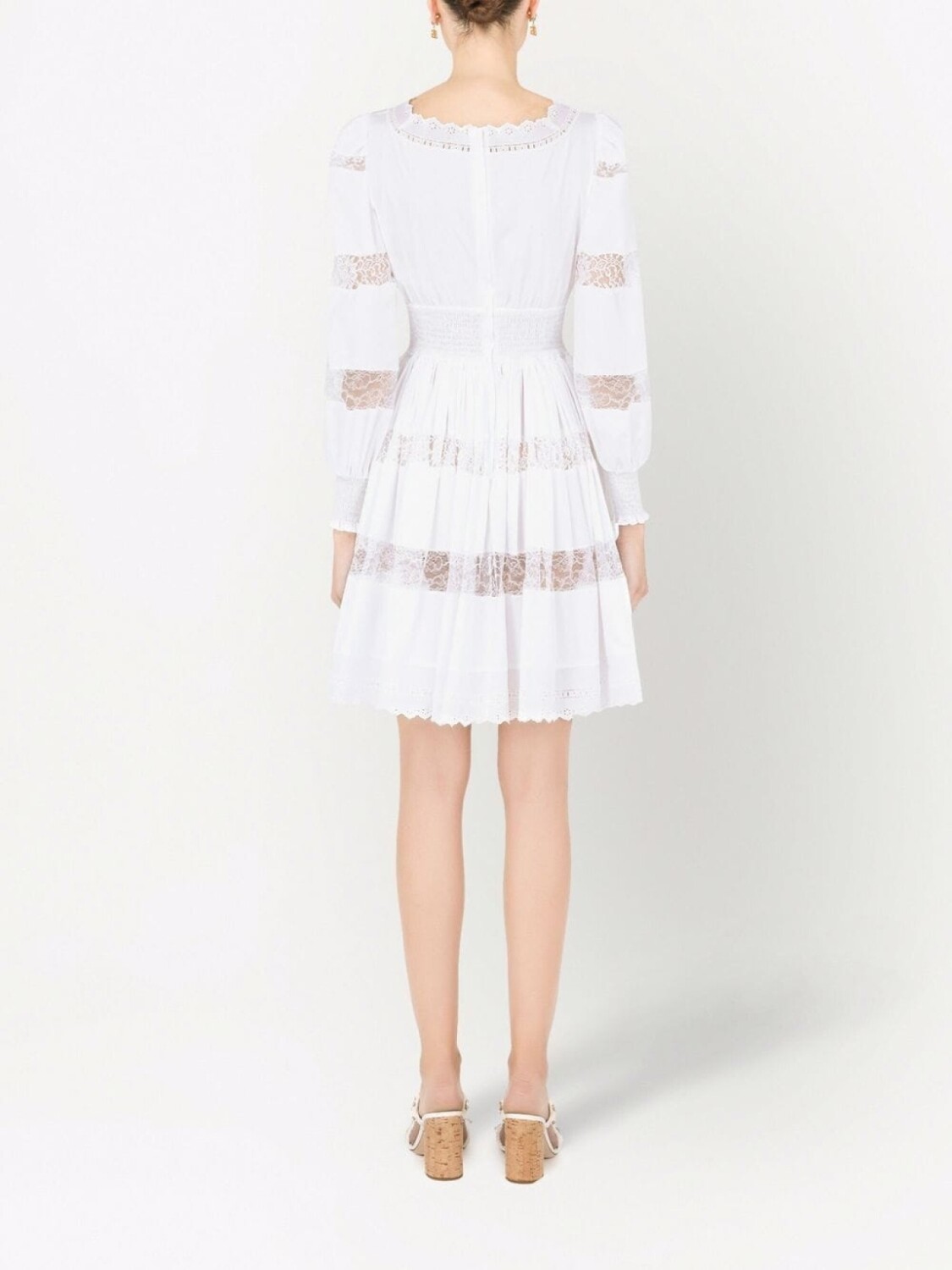 Dolce & Gabbana платье с длинными рукавами и кружевом, белый