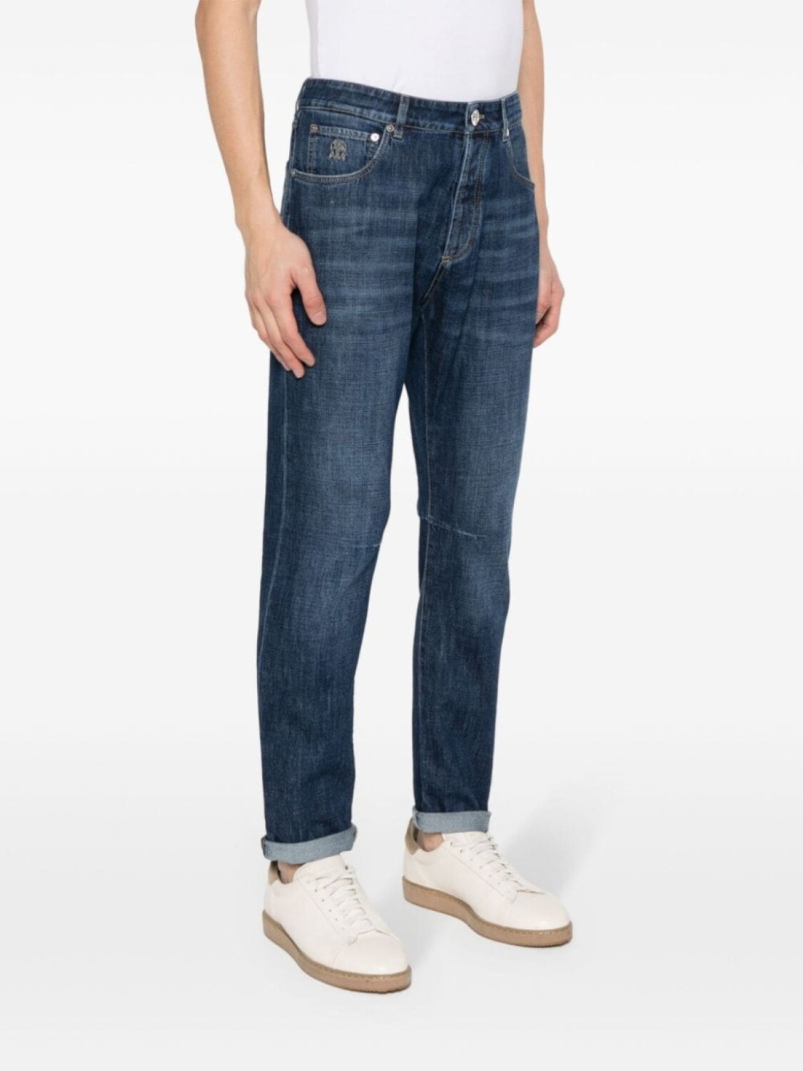 Brunello Cucinelli зауженные джинсы с вышивкой, синий