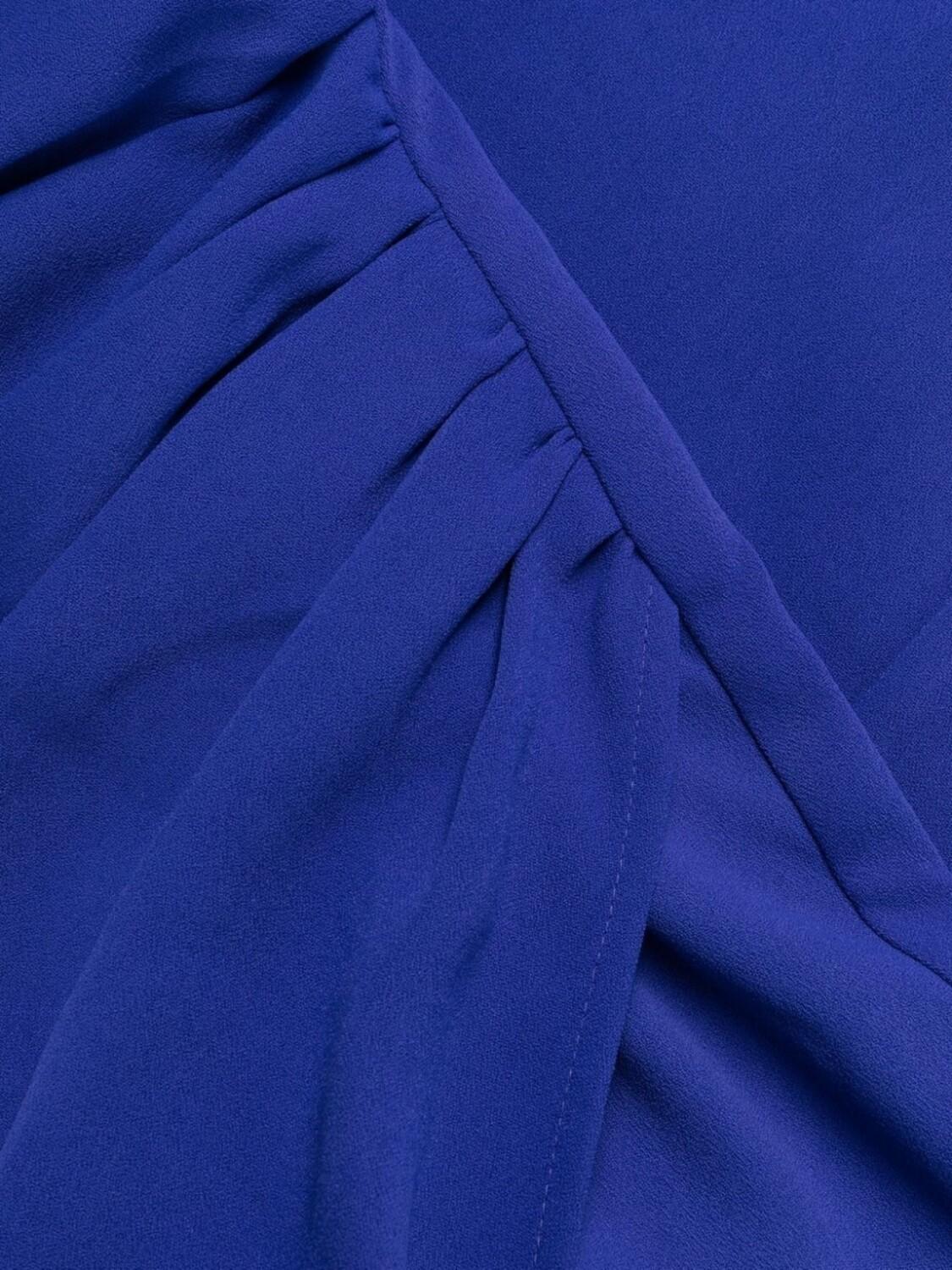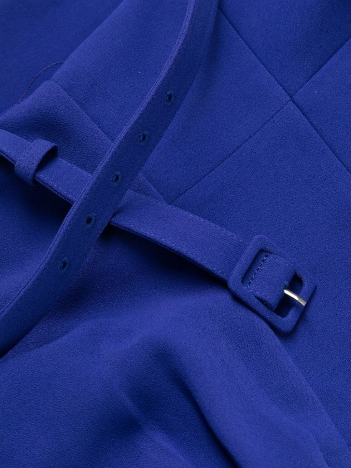 Синий, дизайн со сборками, вырез в форме сердца, ремень на талии, потайная застежка на молнии сзади, короткие рукава, разрез спереди, длина миди и петли для ремня.