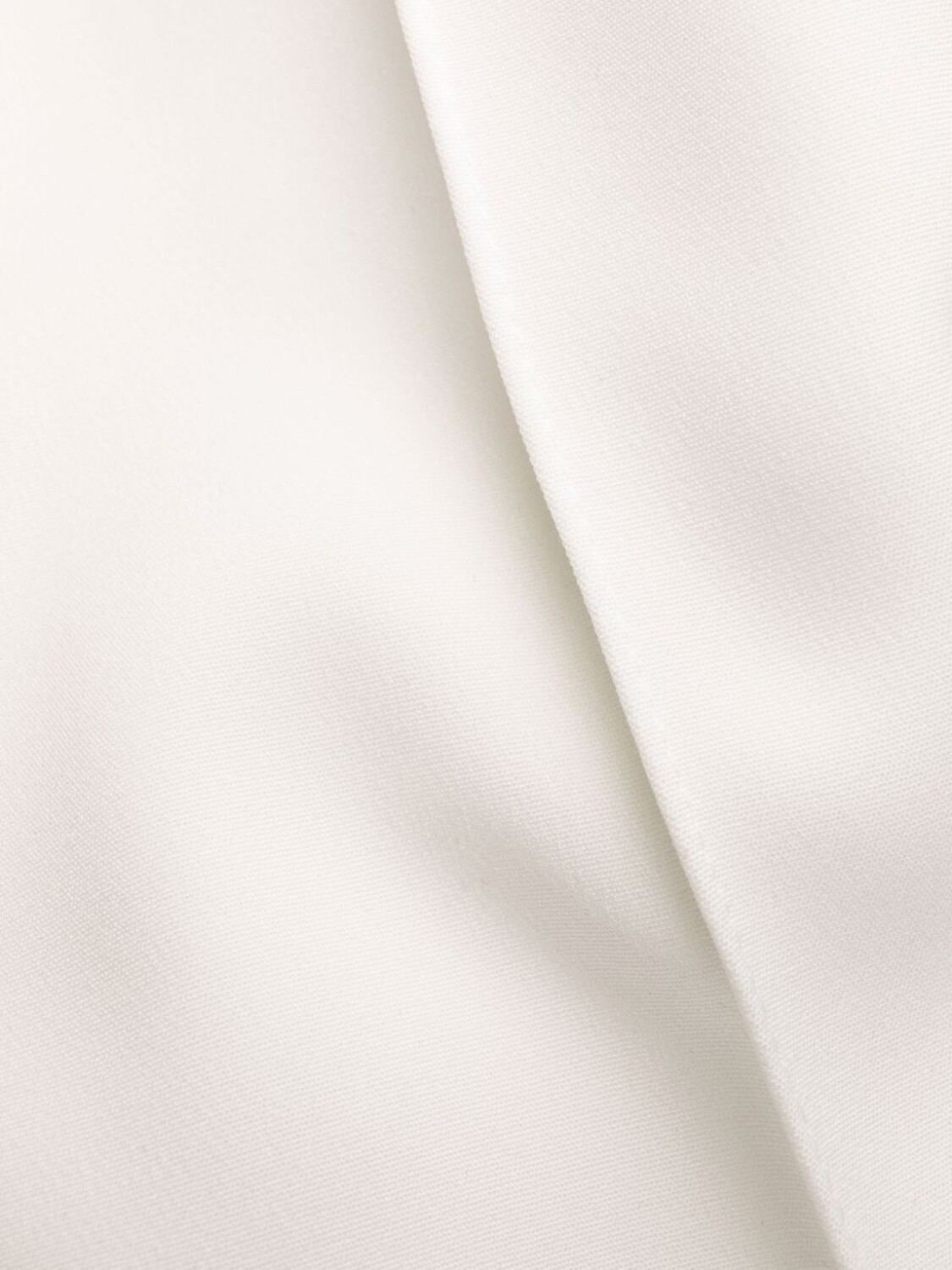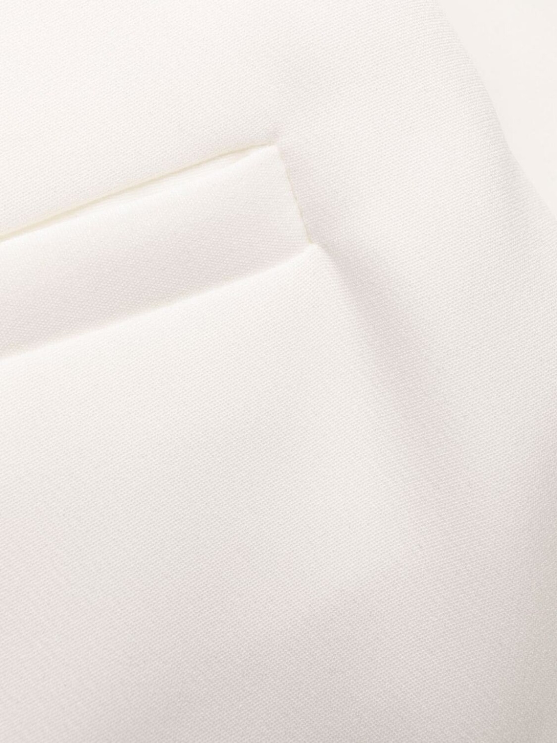 Завышенная талия, разрез, петли для ремня и застежка на пуговицах спереди. Цвет: белый.