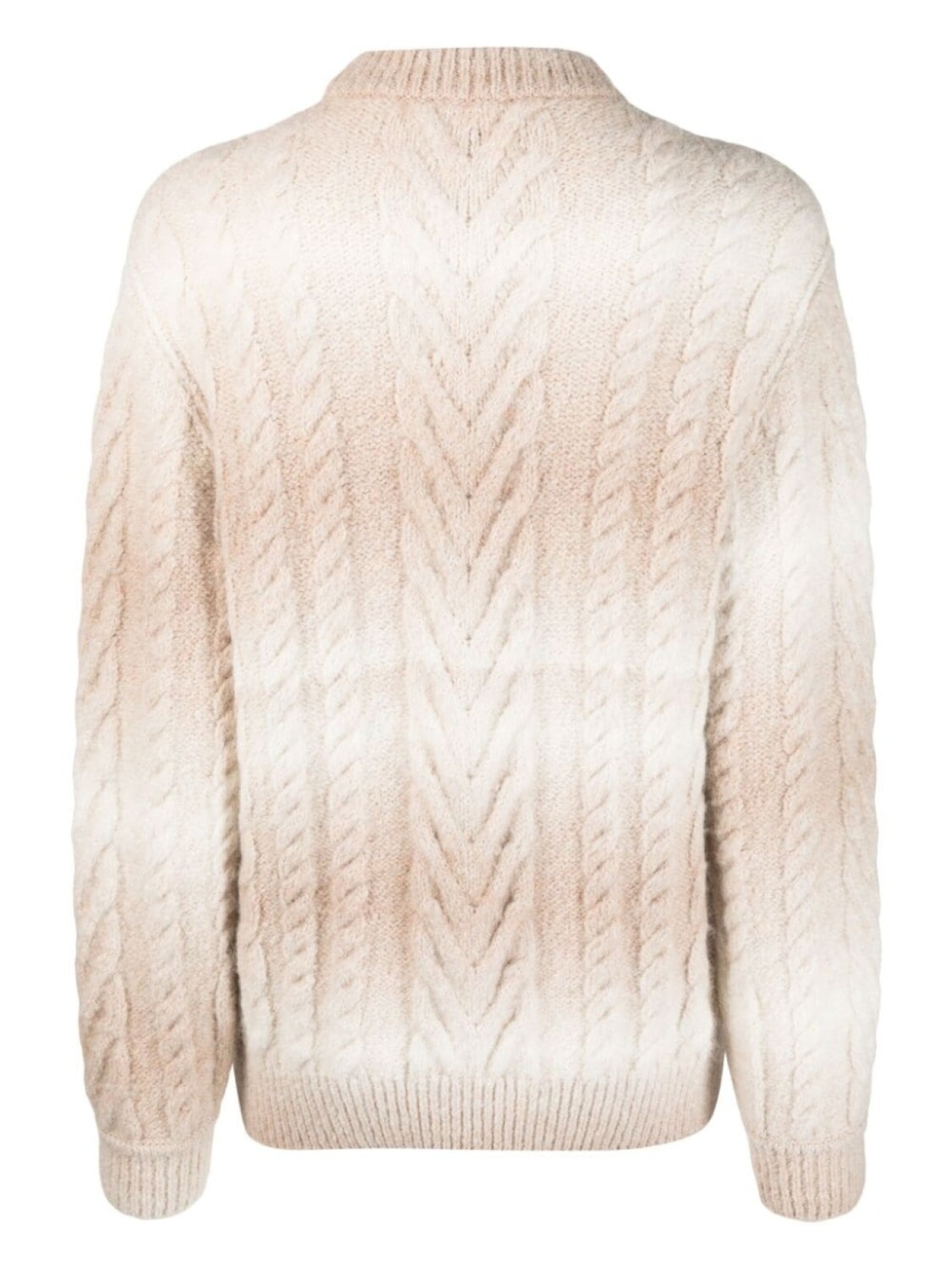 Бежевый, белый, смесовая шерсть альпаки, трикотажный материал, фактурная вязка, подвеска в виде черепа, узор в горизонтальную полоску, круглый вырез, длинные рукава и прямой подол.