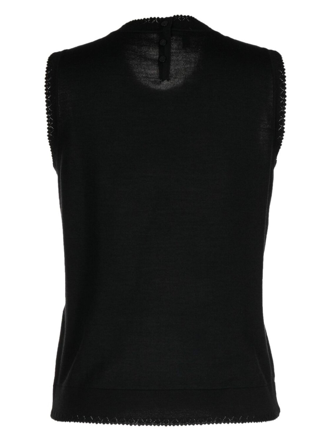 Черный, шерсть мериноса, смесовый шелк, цветочный принт спереди, круглый вырез, застежка на пуговицы сзади, без рукавов и прямой подол.