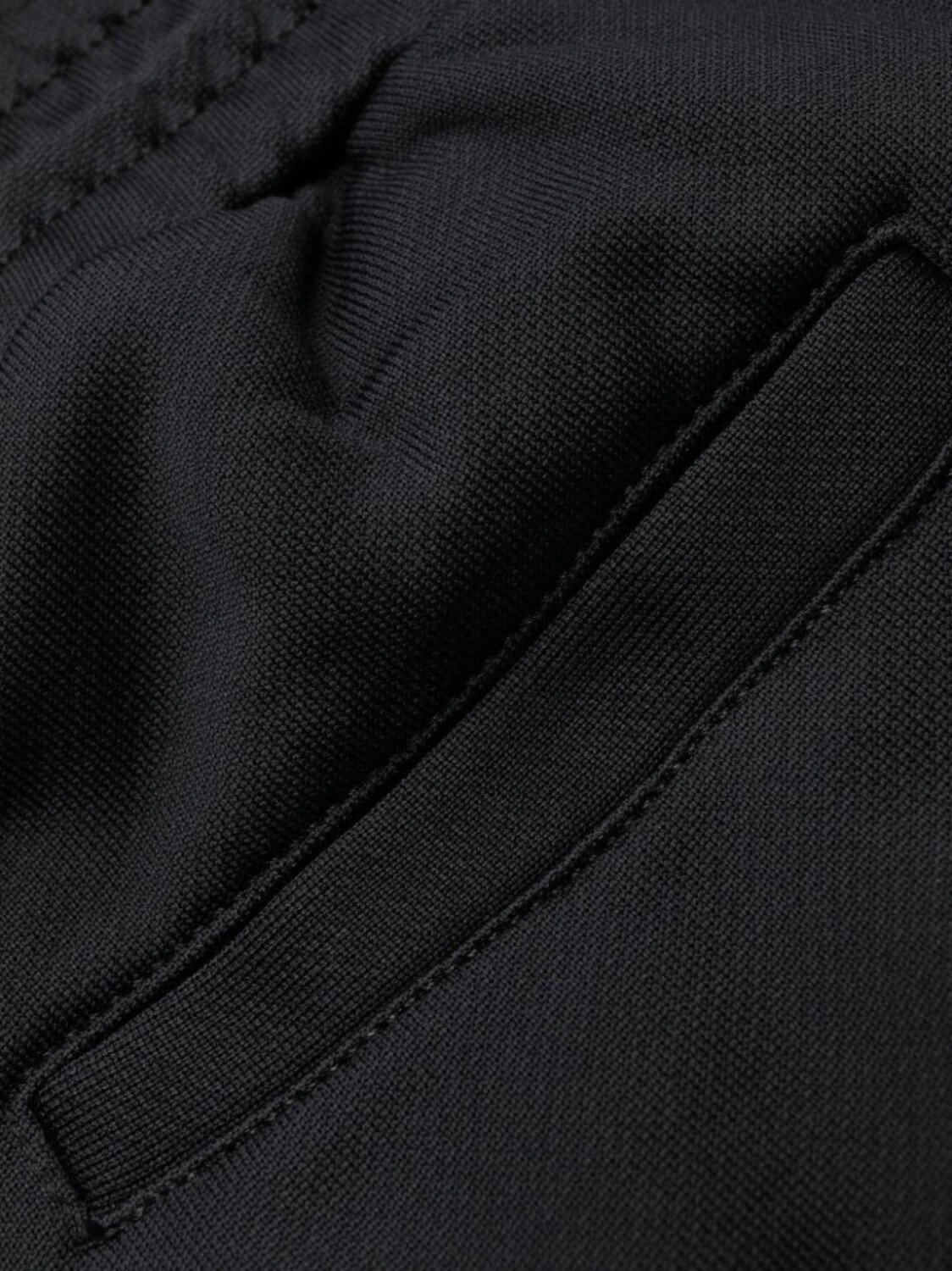 Черный, отделка лентой с логотипом, кулиска на талии, широкий крой и задние карманы с листочкой.