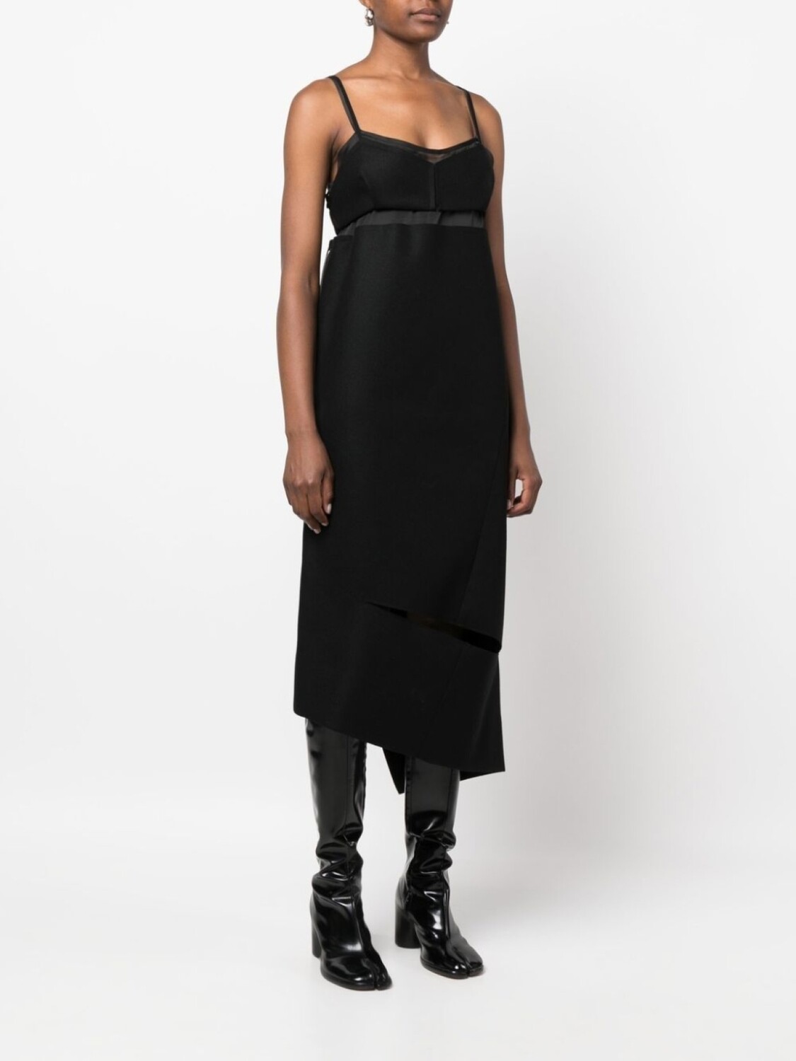 sacai платье миди асимметричного кроя с вырезом, черный