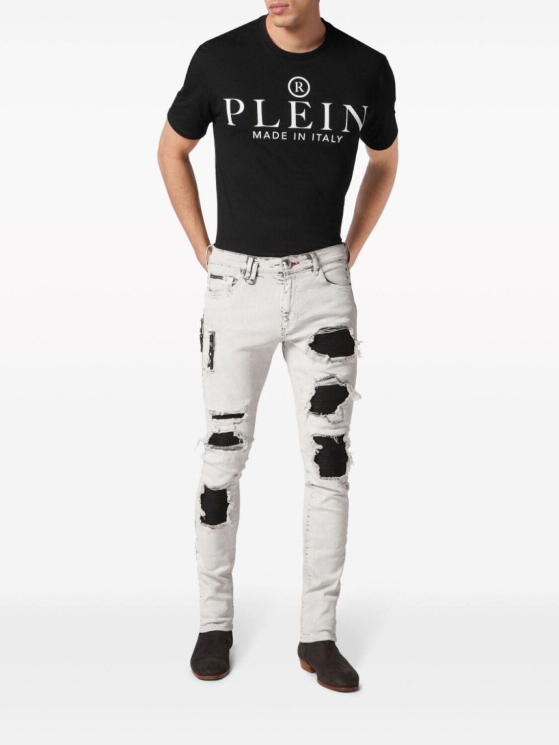 Philipp Plein джинсы скинни с эффектом потертости, белый 45 526₽