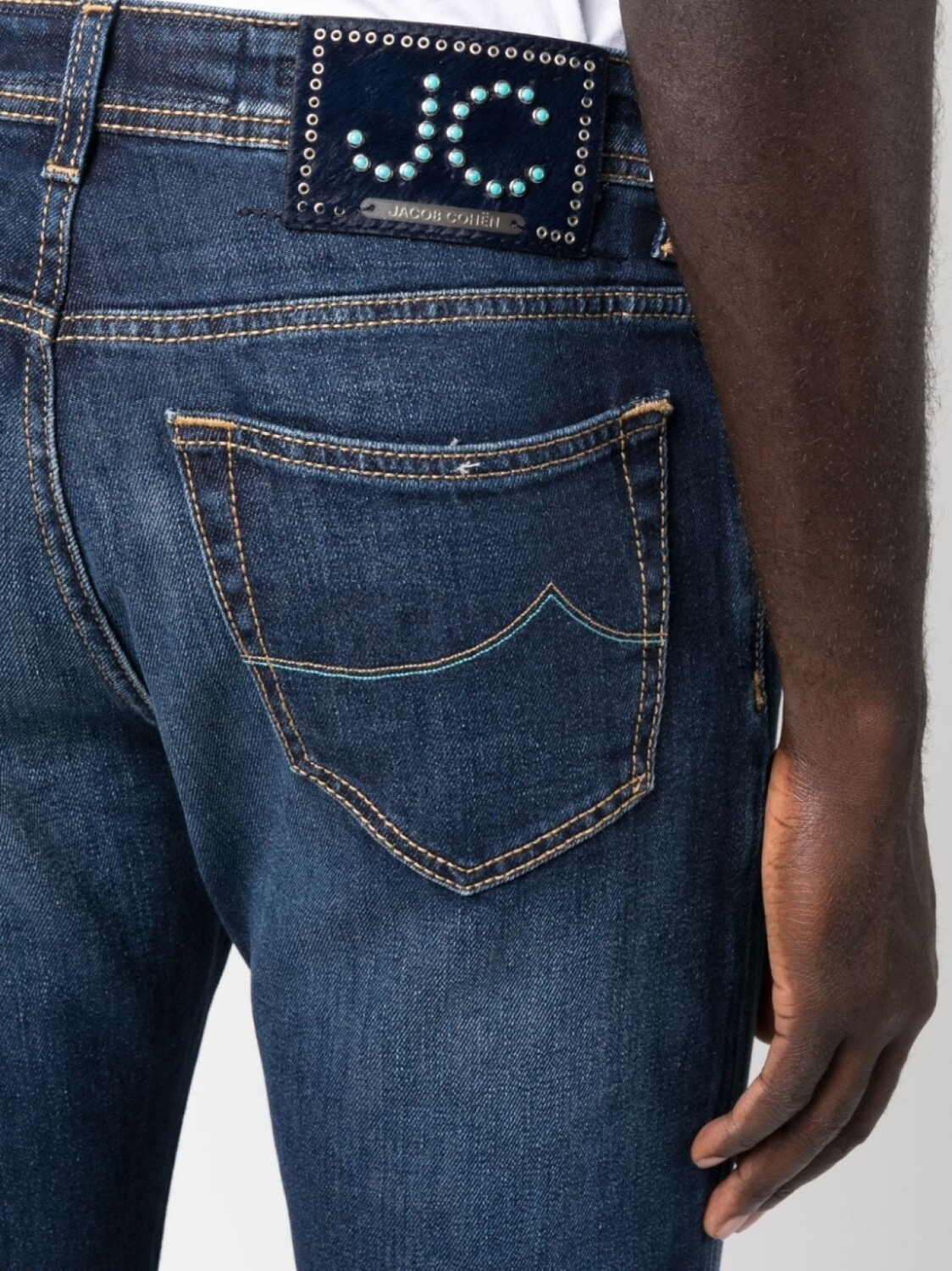 Jacob Cohën джинсы узкого кроя с вышитым логотипом, синий