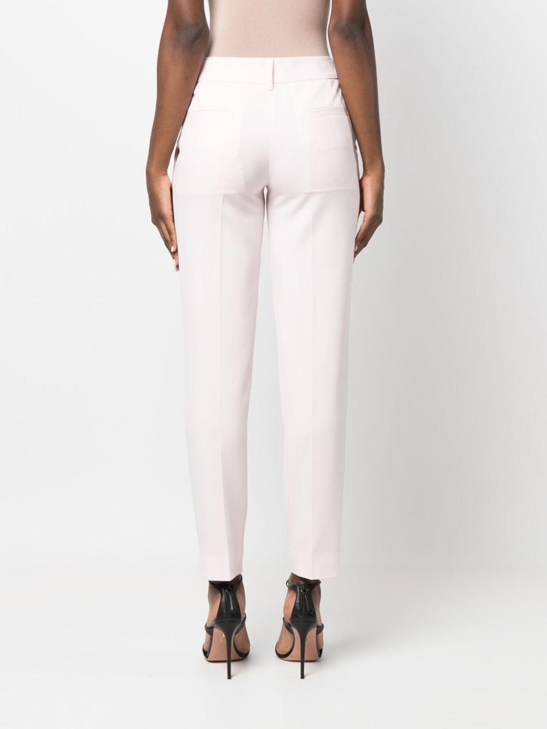 Розовый, эластичная модель, стрелки, завышенная линия талии, петли для ремня, застежка на молнии и пуговице спереди и зауженный крой.