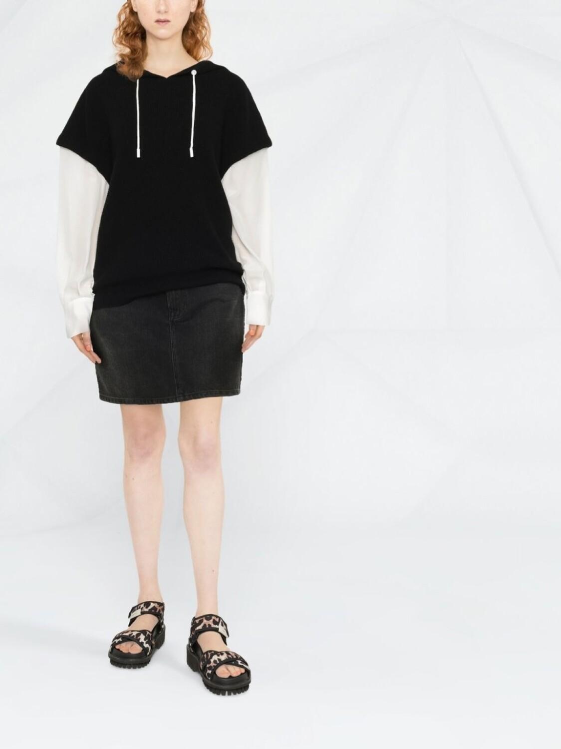 Шелк, смесовый кашемир, черный, классический капюшон, застежка на шнурке, длинные рукава и тонкая вязка.