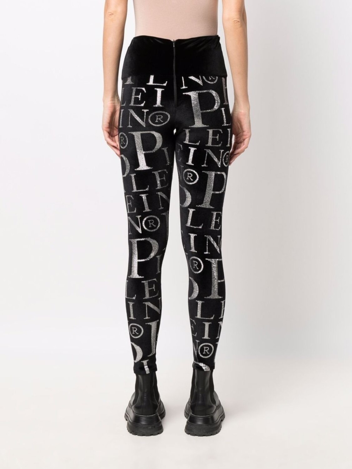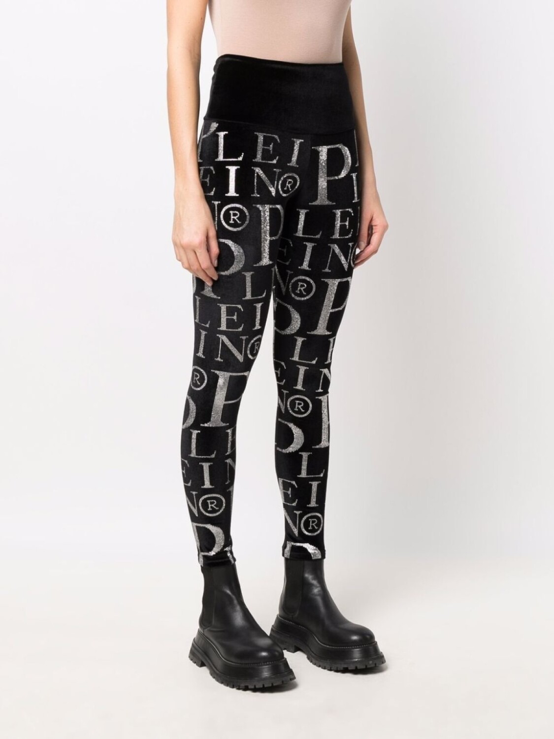 Philipp Plein легинсы с завышенной талией и логотипом, черный