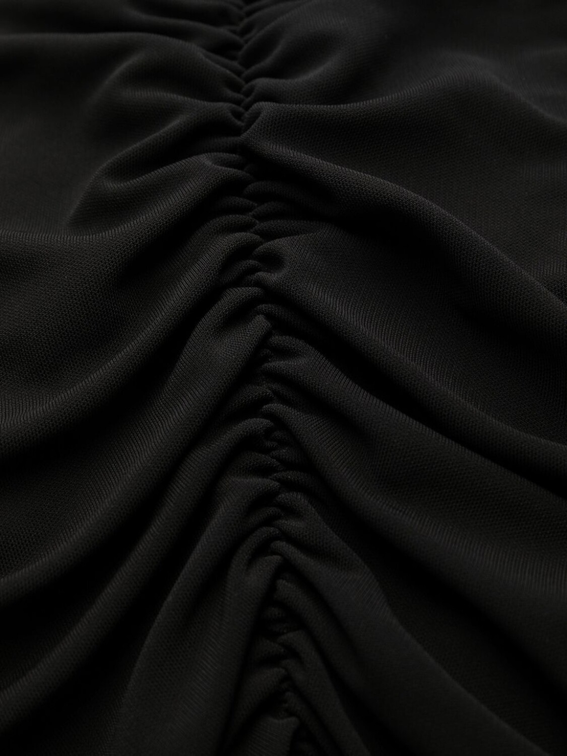 Детали с оборками, круглый вырез, потайная застежка на молнии сзади и длинные рукава. Цвет: черный.