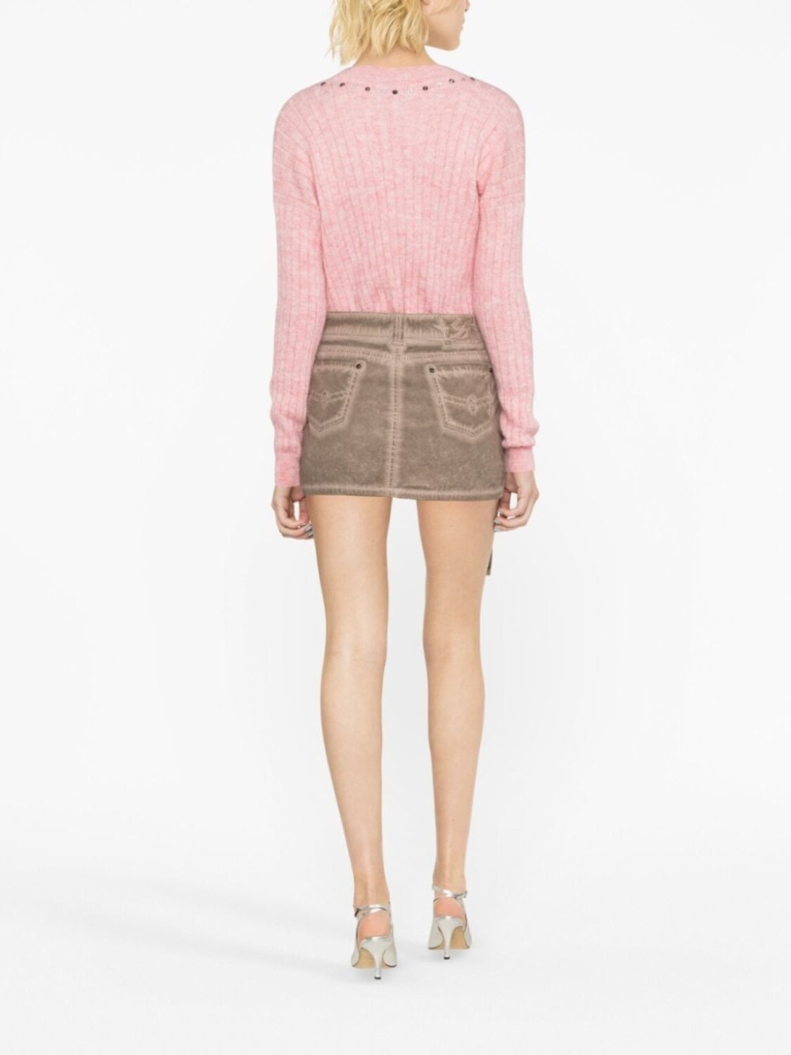 Alessandra Rich джемпер в рубчик с заклепками, розовый