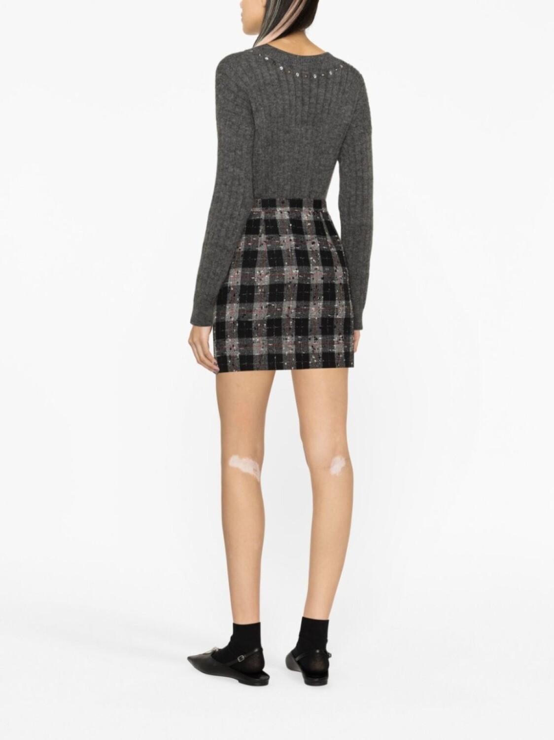 Alessandra Rich джемпер в рубчик с заклепками, серый
