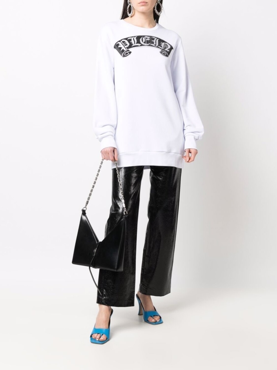 Белый/черный/серебристый, хлопок, логотип с кристаллами на груди, круглый вырез, длинные рукава, эластичные манжеты, эластичный подол, Это унисекс-модель. Обратите внимание, что для нее используется мужская размерная сетка.
