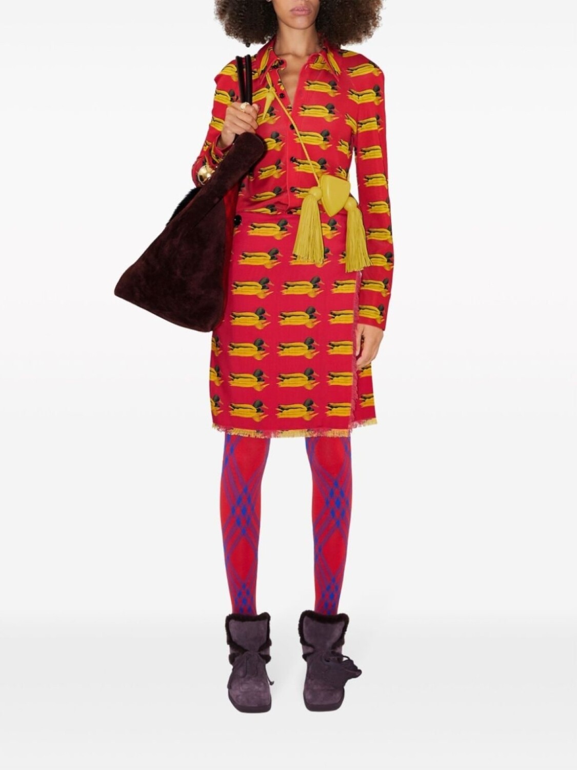 Burberry шерстяная мини-юбка с принтом, красный 146 840₽