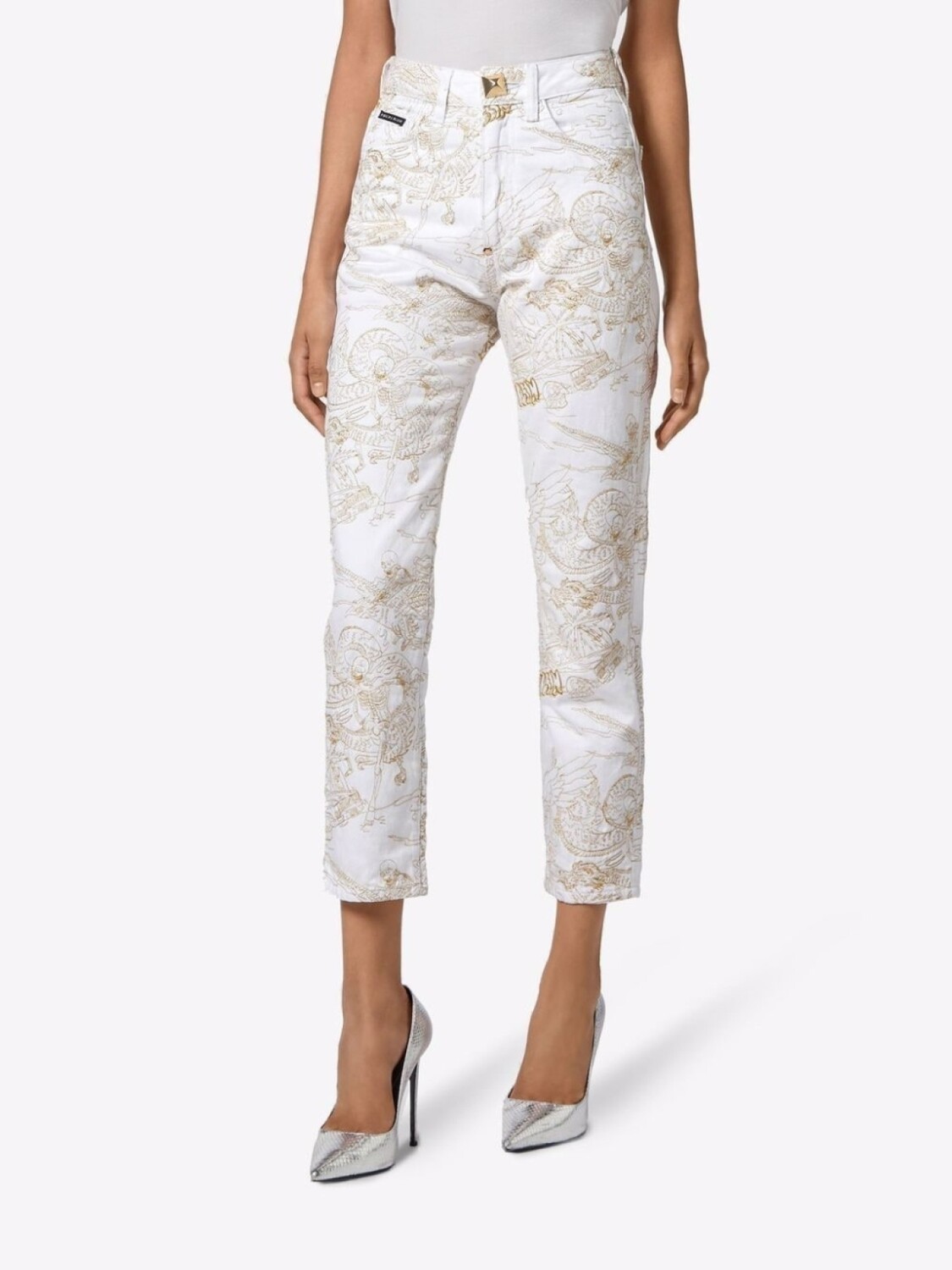Philipp Plein укороченные джинсы с принтом, белый 52 707₽