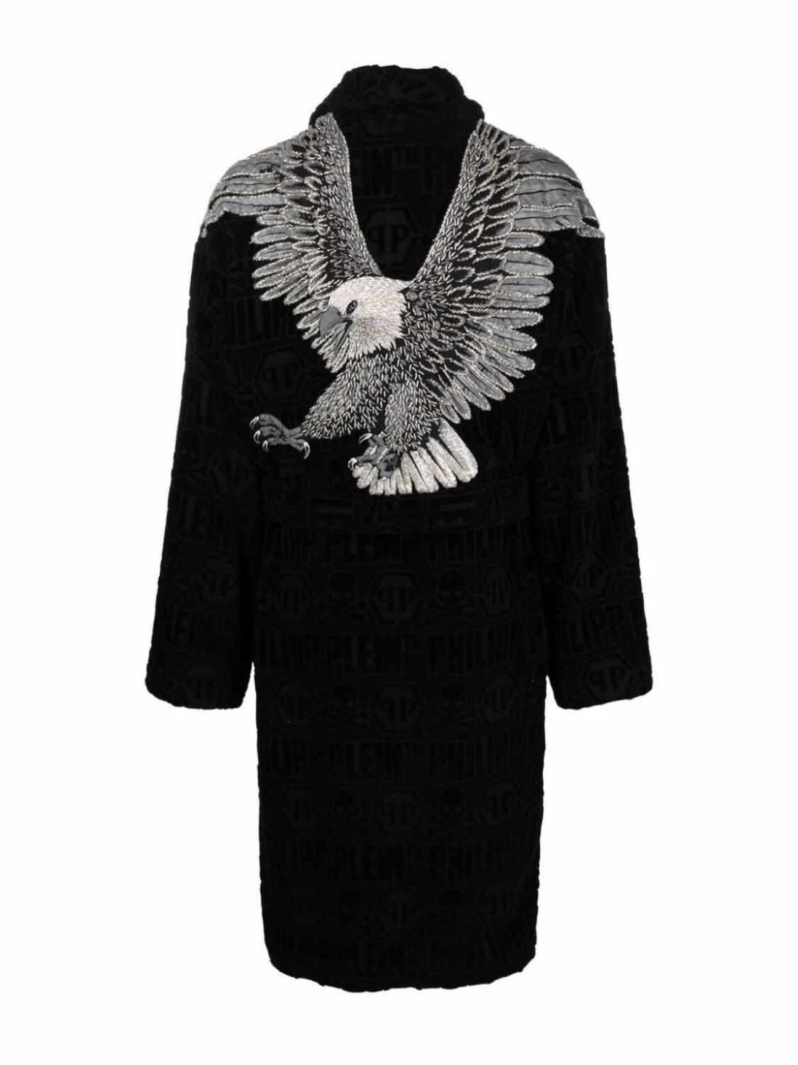 Детали из бисера, лацканы-шалька, ремень на талии, длинные рукава и длина миди. Цвет: черный.