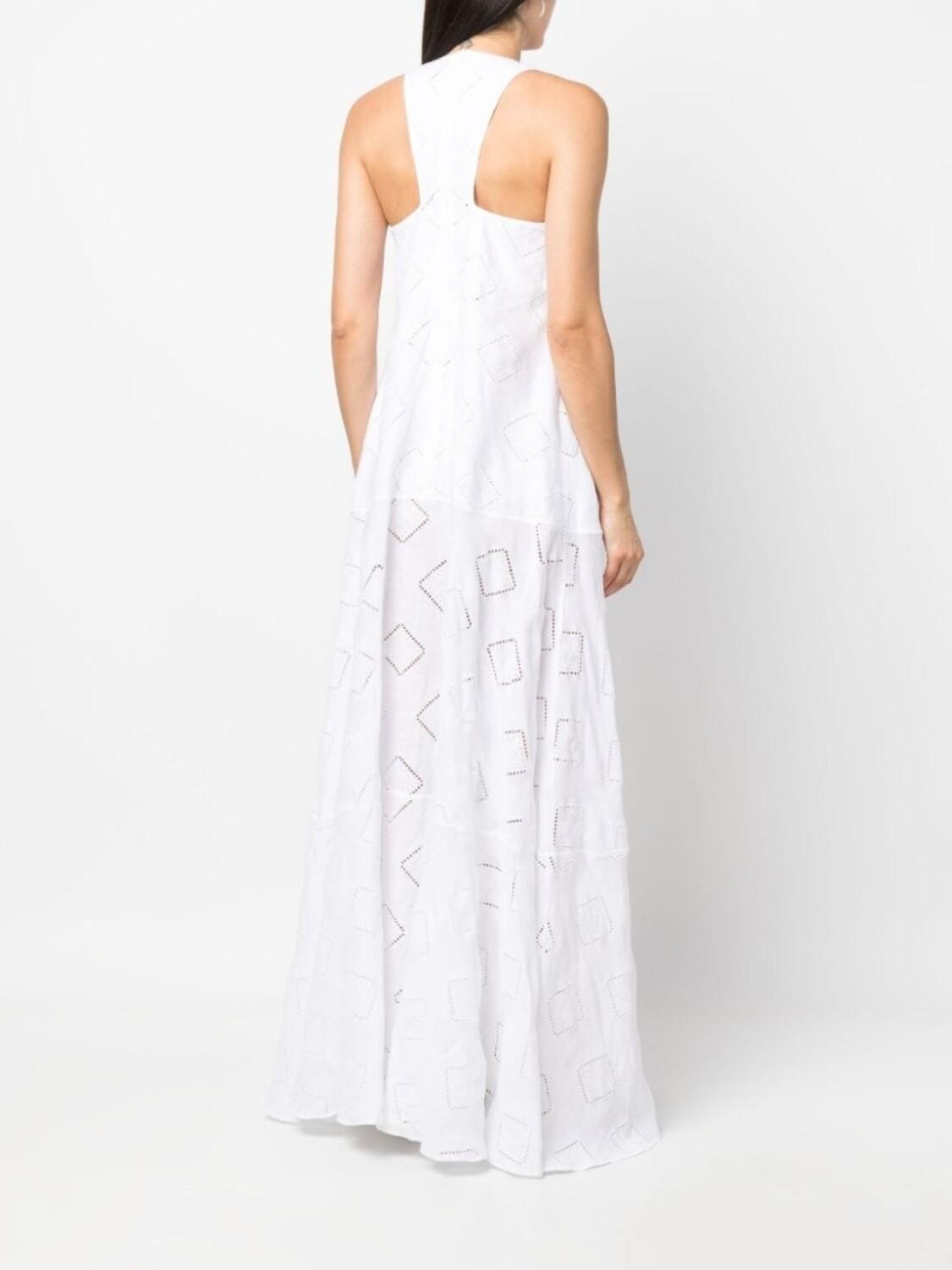 Подробнее о товаре: Кремовый, лен, перфорация, круглый вырез, застежка на молнии сзади, без рукавов, расклешенный подол и длина макси. Этот товар как минимум на 50% состоит из материалов, которые признаны более безопасными для окружающей среды, и/или произведены с использованием методов, которые помогают сократить потребление воды и химических веществ. Узнать больше о том, какие товары получают отметку «Ответственный выбор», можно из материала «Как мы оцениваем экологичность и этичность».