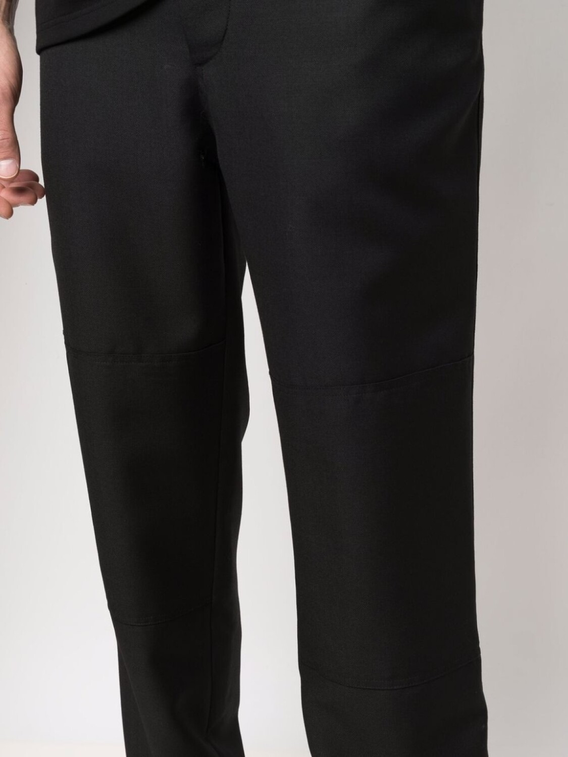 Завышенная талия, прямой крой, эластичный пояс на шнурке, два прорезных кармана по бокам, два кармана с листочкой сзади и эластичные манжеты. Цвет: черный.