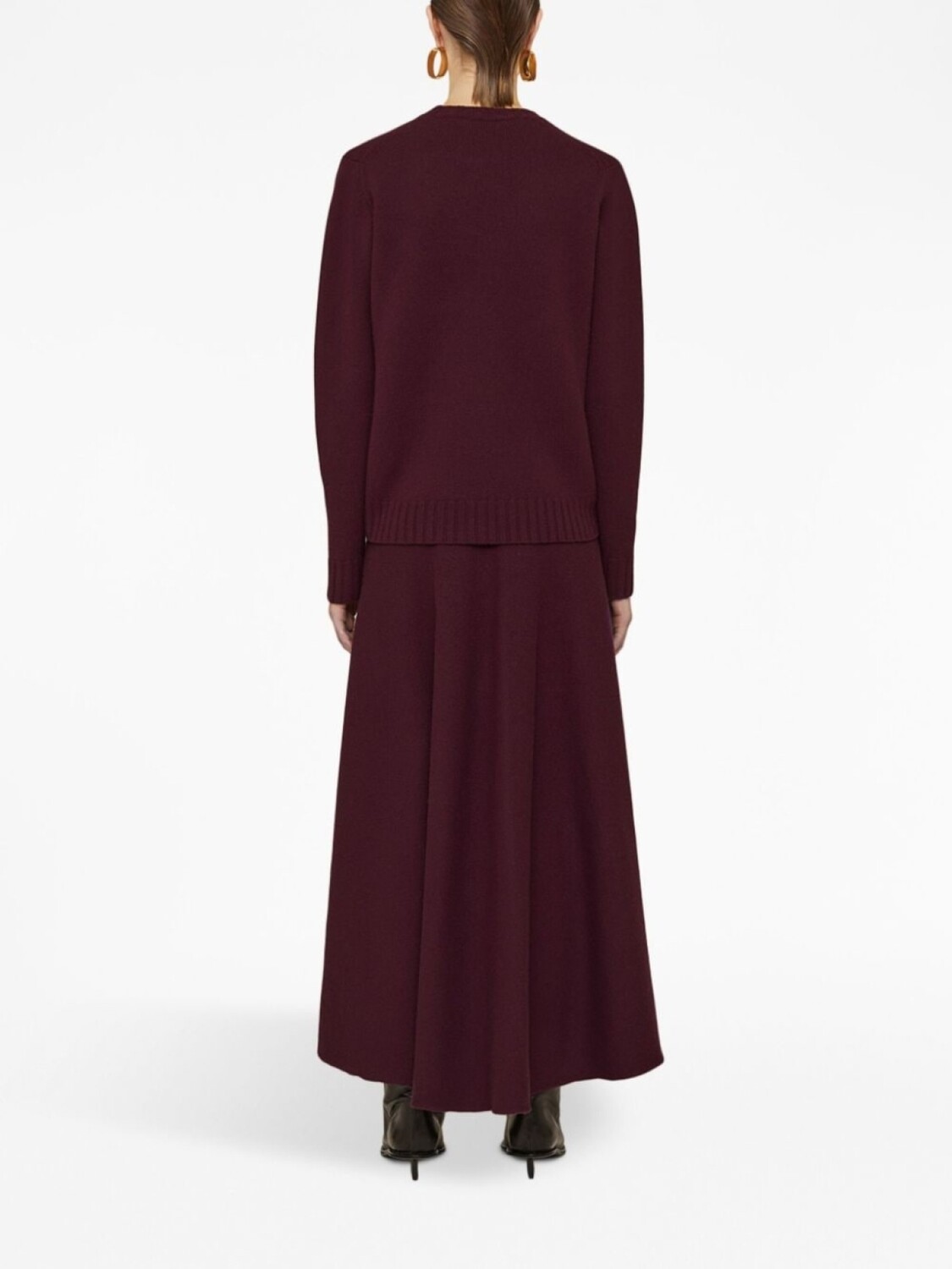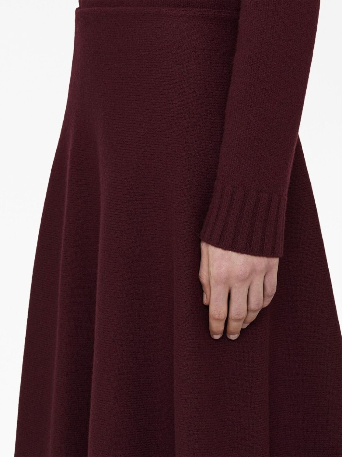 Бордовый, шерсть, расклешенный крой, завышенная талия и длинная модель.